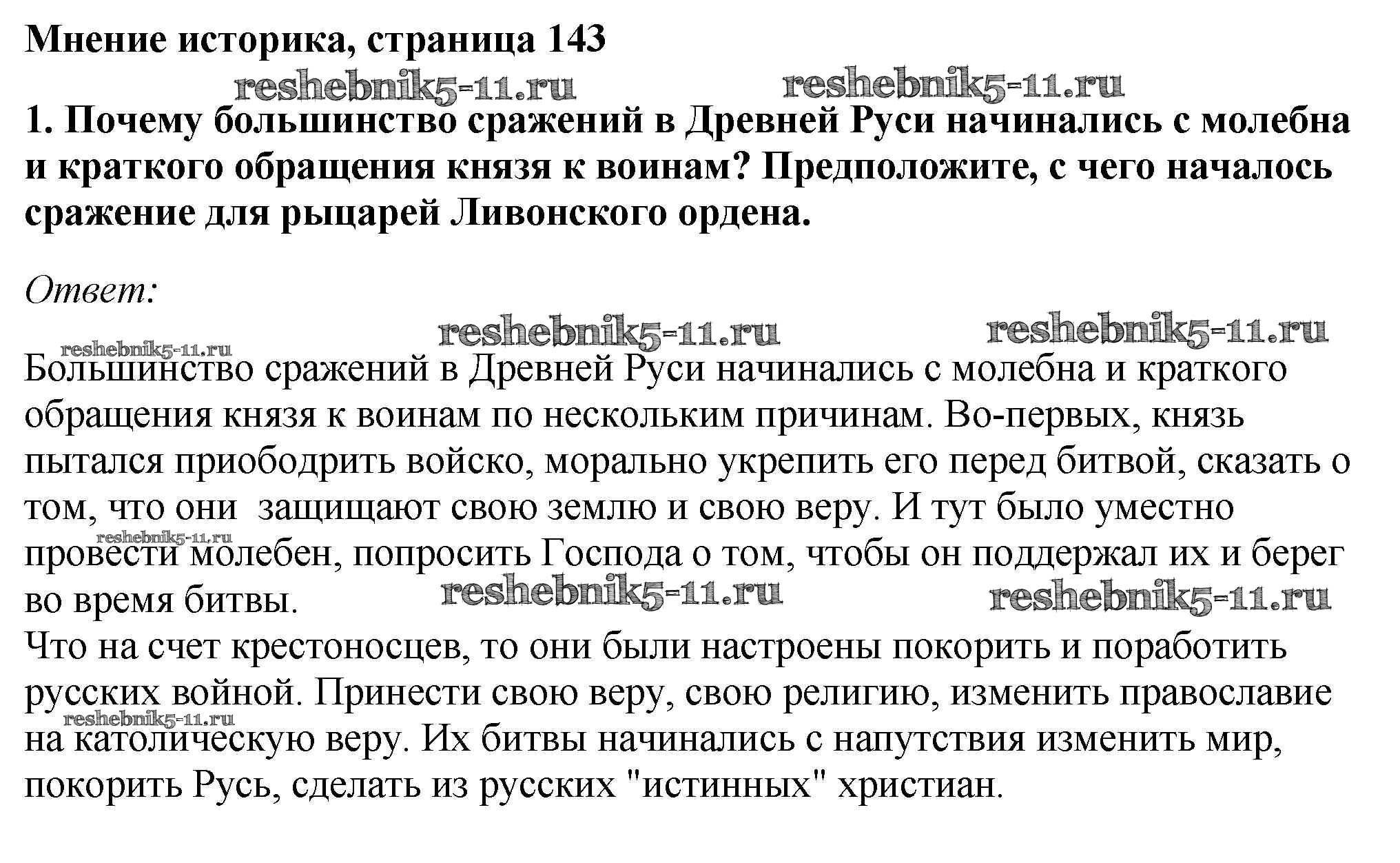 Готовая домашняя работа с ответами по Истории за 6 класс Андреев, Федоров Учебник Вертикаль Дрофа 2016 - §19. Борьба Северо - Западной Руси против экспансии с Запада стр.143