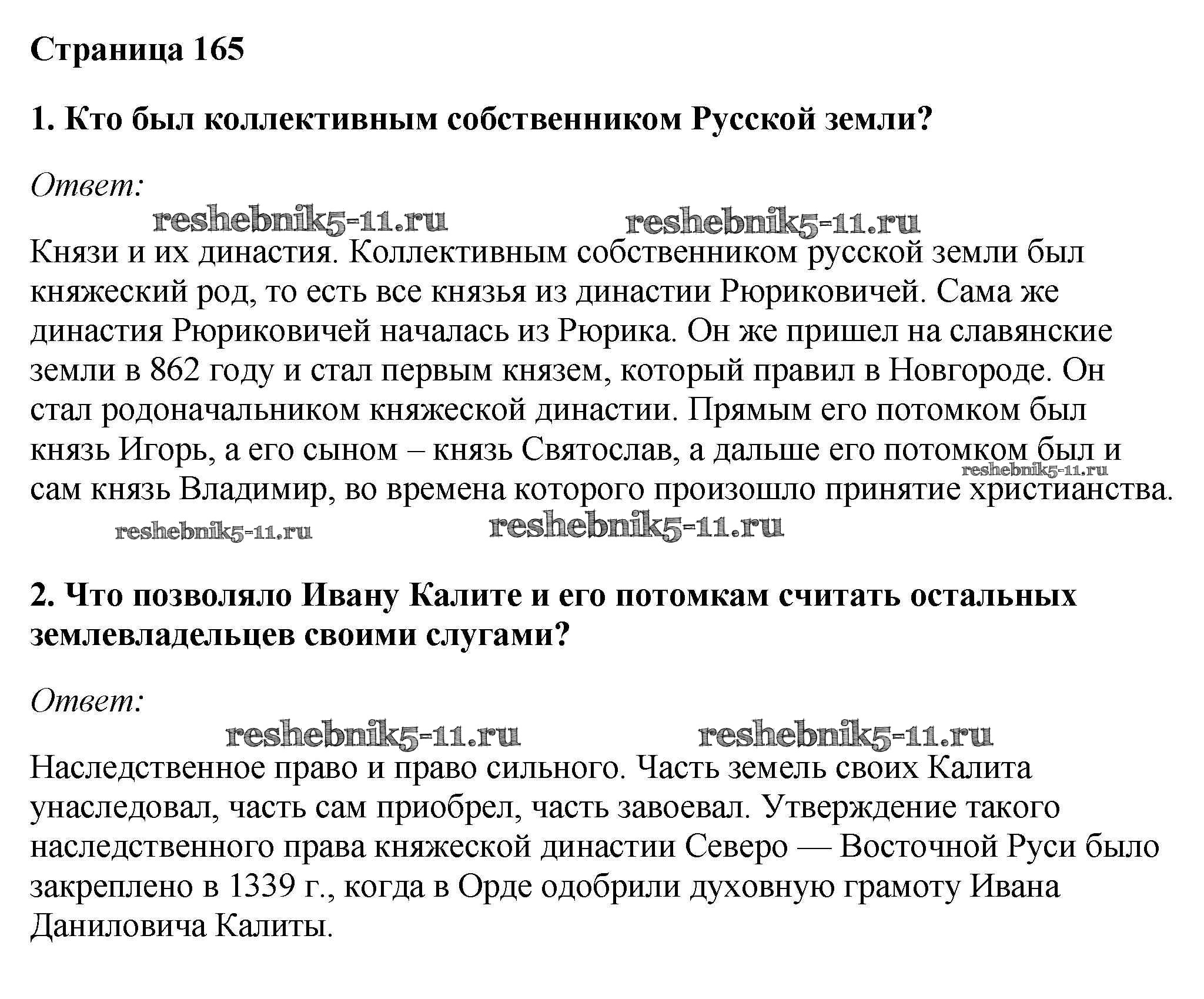 Готовая домашняя работа с ответами по Истории за 6 класс Андреев, Федоров Учебник Вертикаль Дрофа 2016 - §23. Начало объединения русских земель вокруг Москвы стр.165