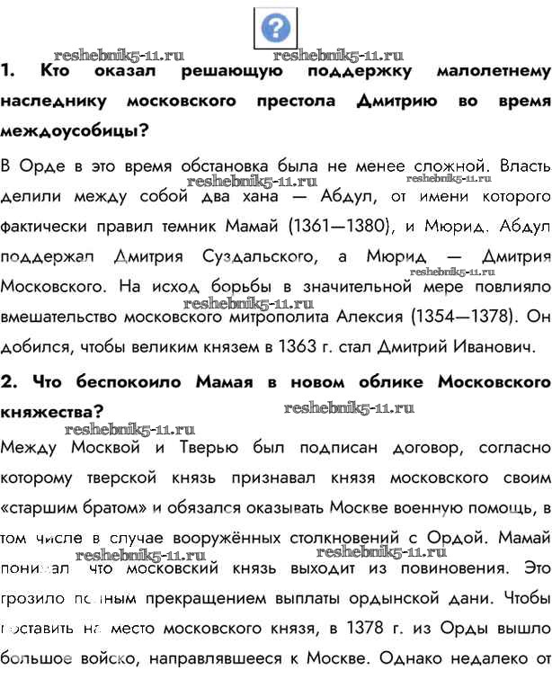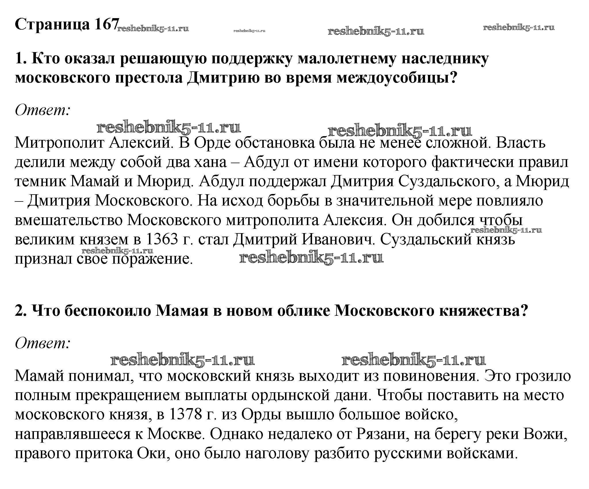Готовая домашняя работа с ответами по Истории за 6 класс Андреев, Федоров Учебник Вертикаль Дрофа 2016 - §23. Начало объединения русских земель вокруг Москвы стр.167