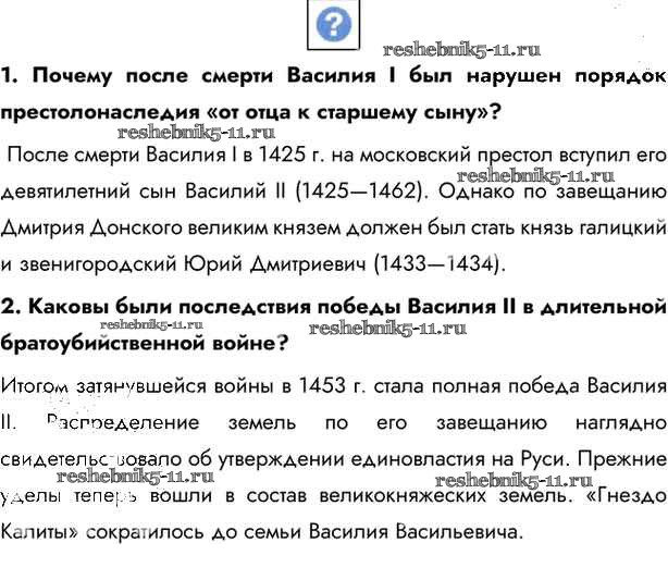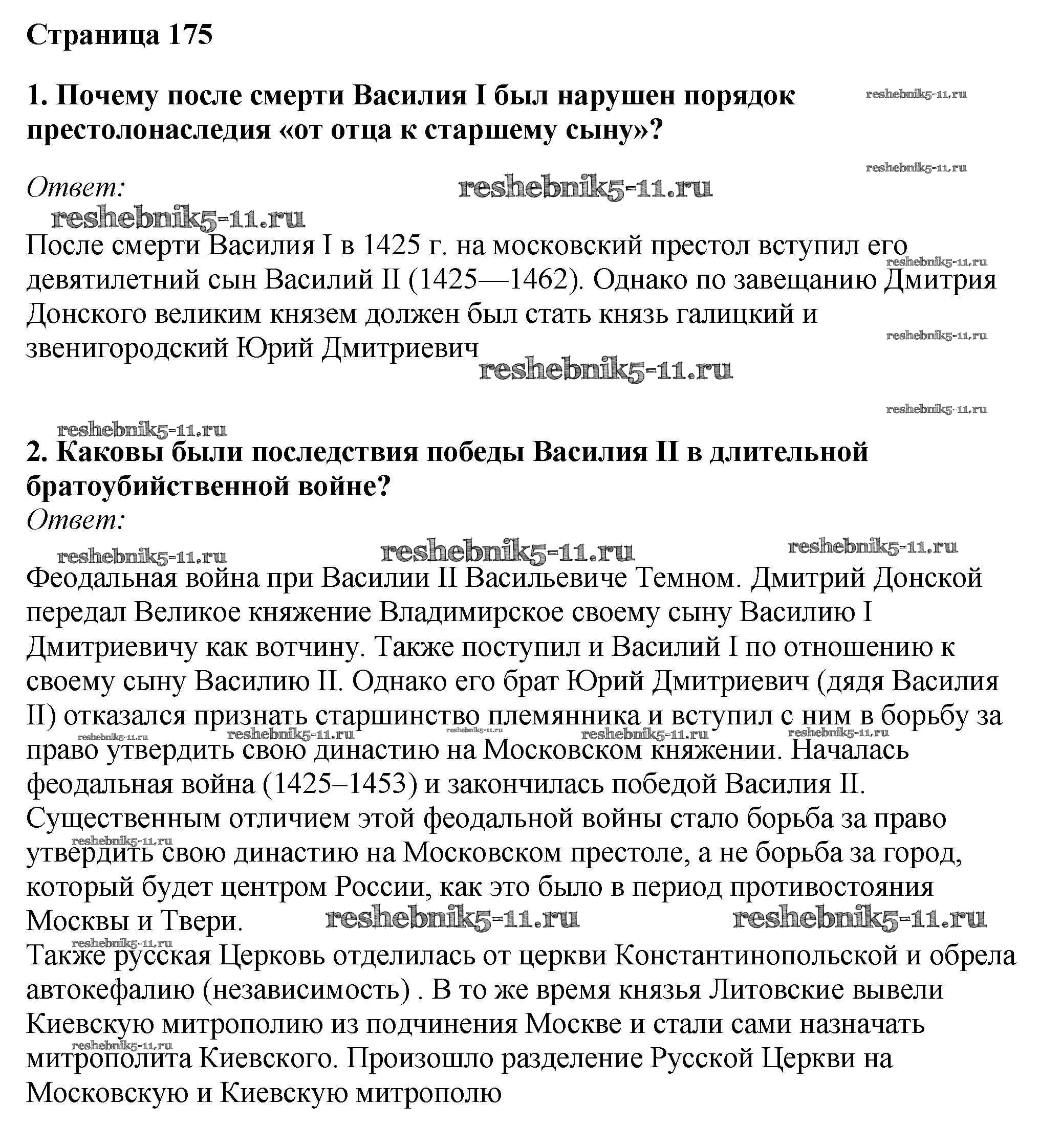 Готовая домашняя работа с ответами по Истории за 6 класс Андреев, Федоров Учебник Вертикаль Дрофа 2016 - §24. Московское княжество в конце XIV - середине XV веков стр.175