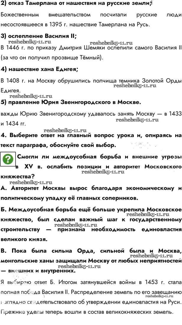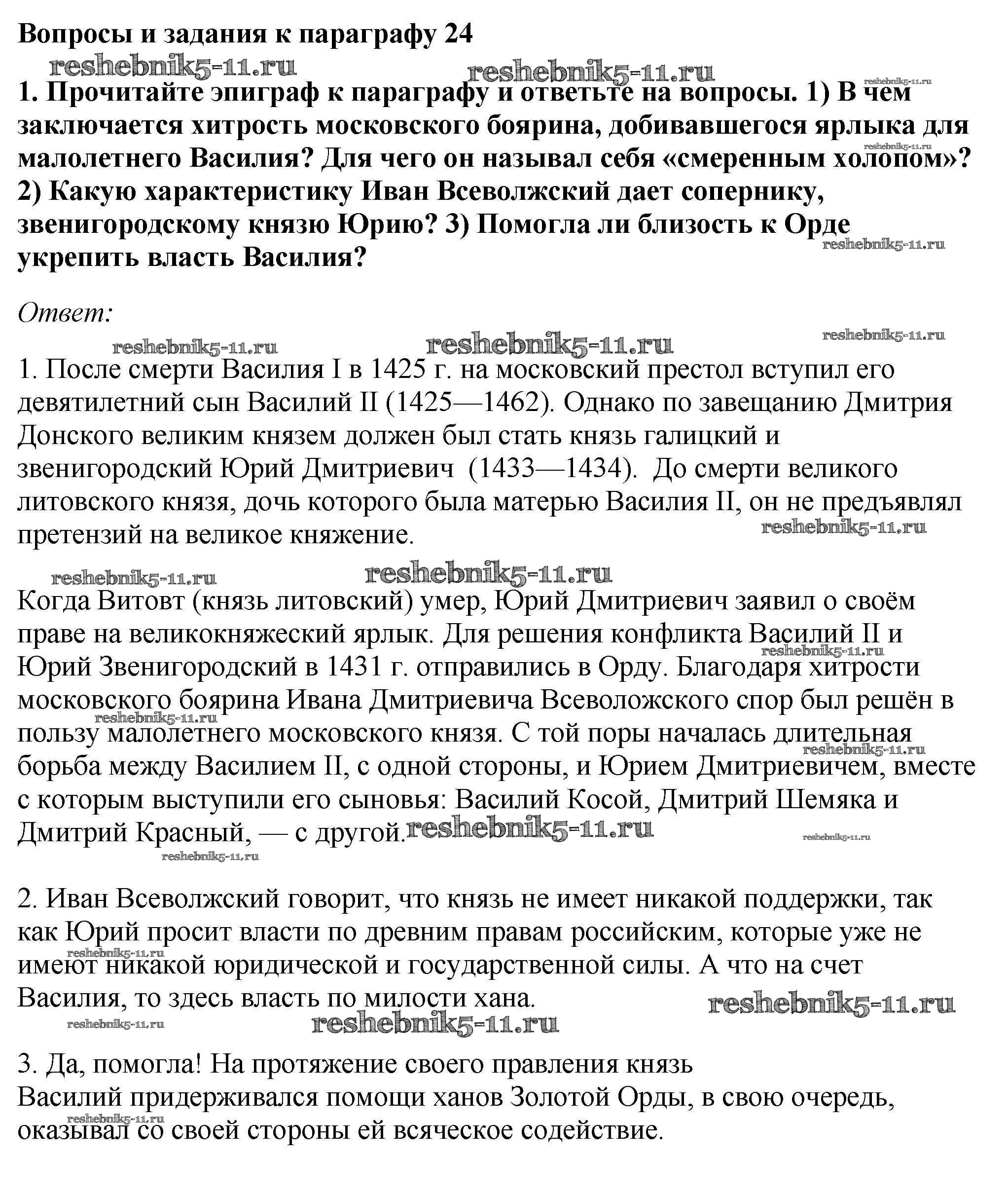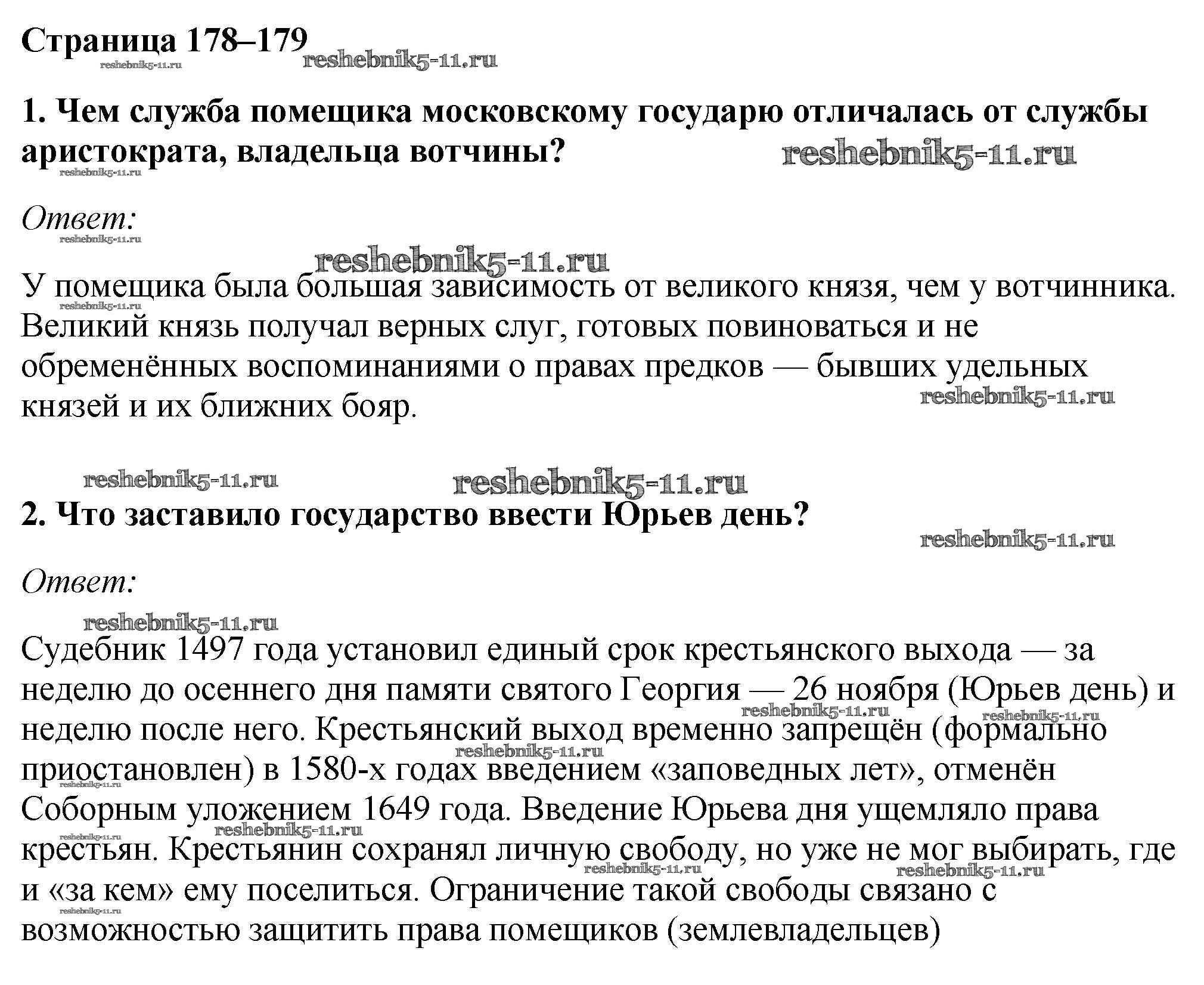 Готовая домашняя работа с ответами по Истории за 6 класс Андреев, Федоров Учебник Вертикаль Дрофа 2016 - §24. Московское княжество в конце XIV - середине XV веков стр.178