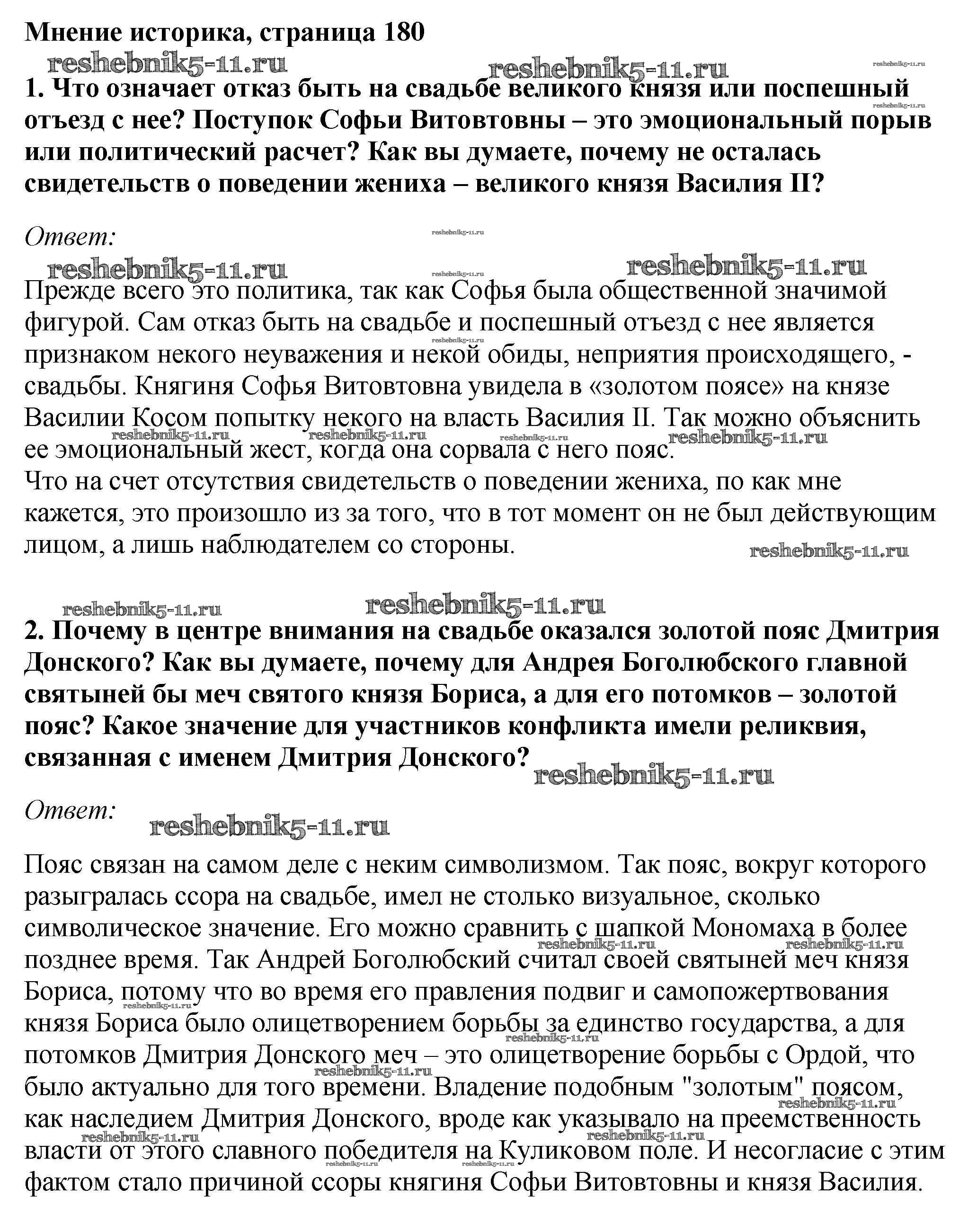 Готовая домашняя работа с ответами по Истории за 6 класс Андреев, Федоров Учебник Вертикаль Дрофа 2016 - §24. Московское княжество в конце XIV - середине XV веков стр.180