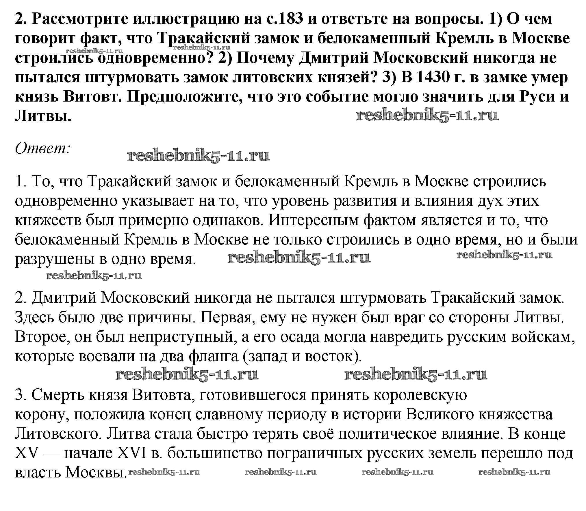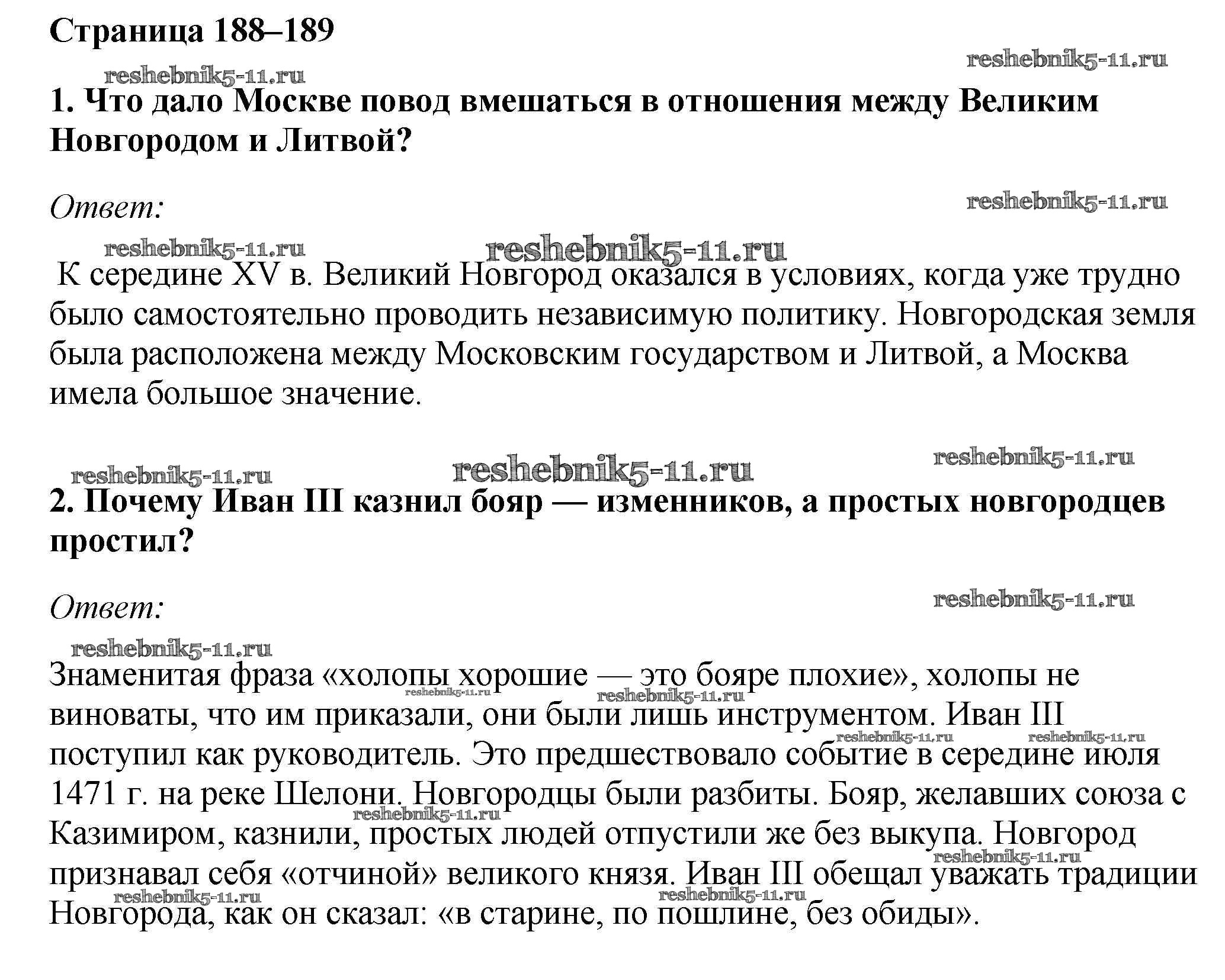 Готовая домашняя работа с ответами по Истории за 6 класс Андреев, Федоров Учебник Вертикаль Дрофа 2016 - §25. Соперники Москвы стр.188