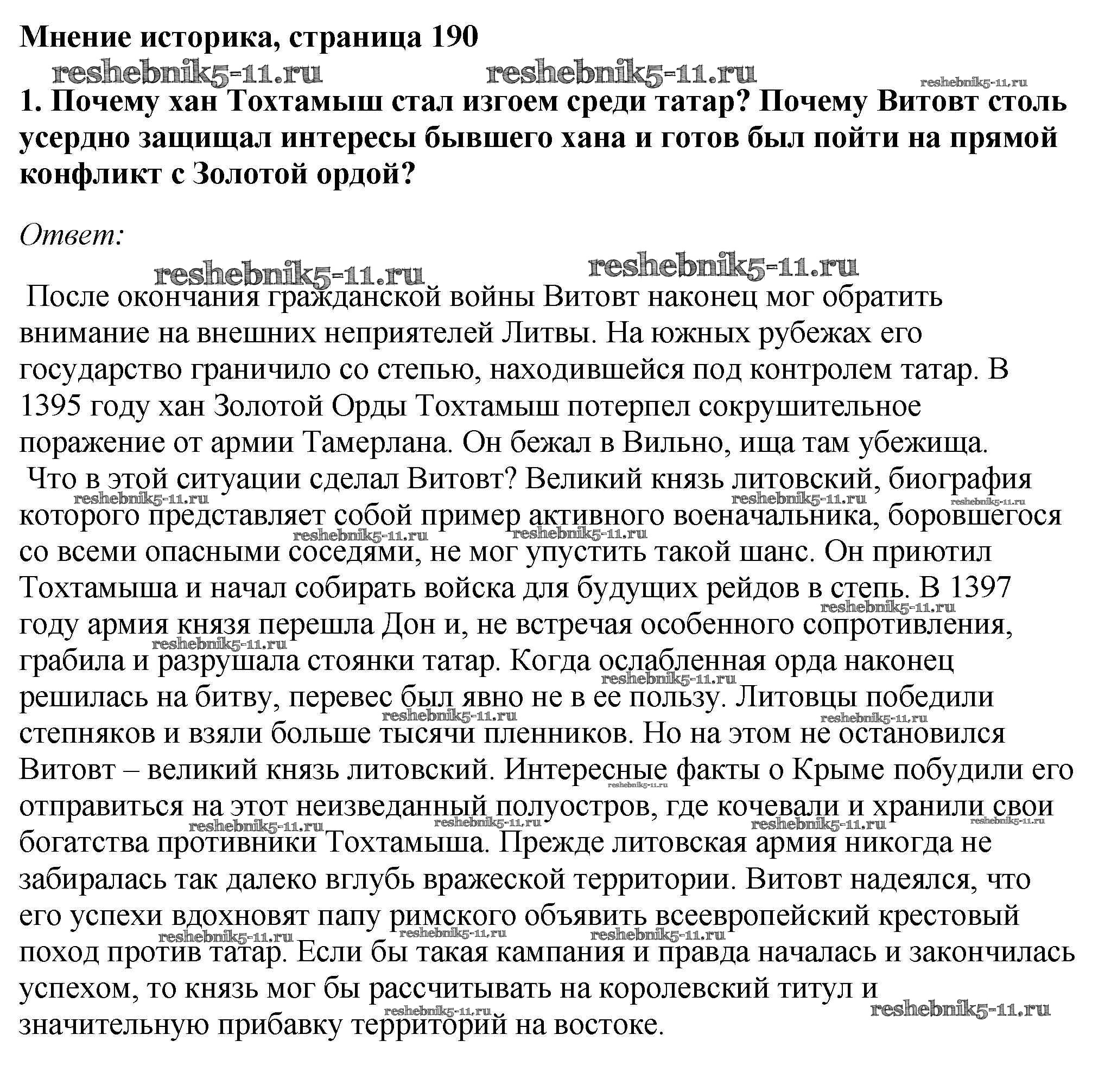 Готовая домашняя работа с ответами по Истории за 6 класс Андреев, Федоров Учебник Вертикаль Дрофа 2016 - §25. Соперники Москвы стр.190