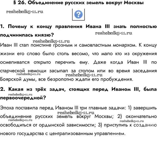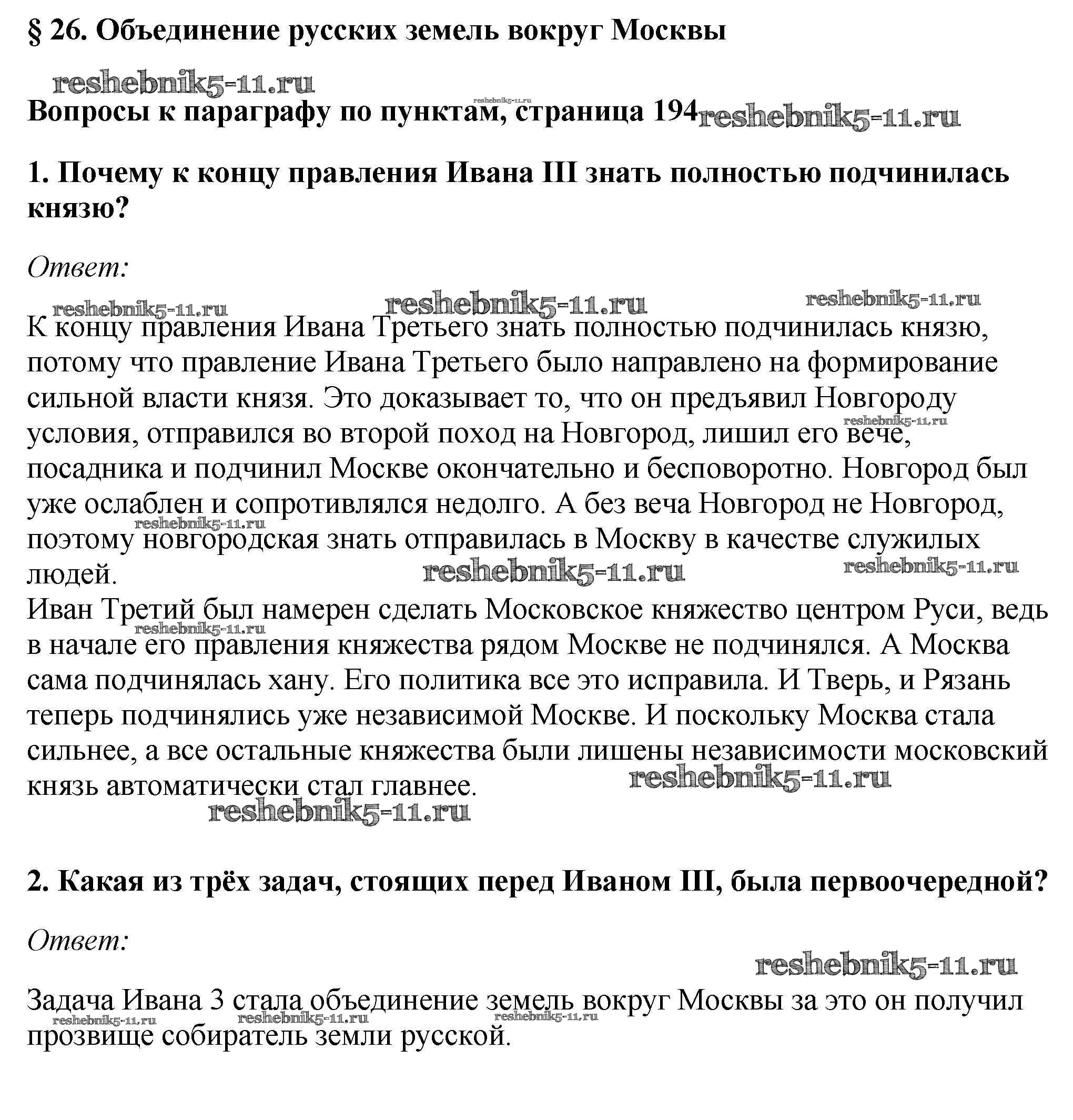 Готовая домашняя работа с ответами по Истории за 6 класс Андреев, Федоров Учебник Вертикаль Дрофа 2016 - §26. Объединение русских земель вокруг Москвы стр.194