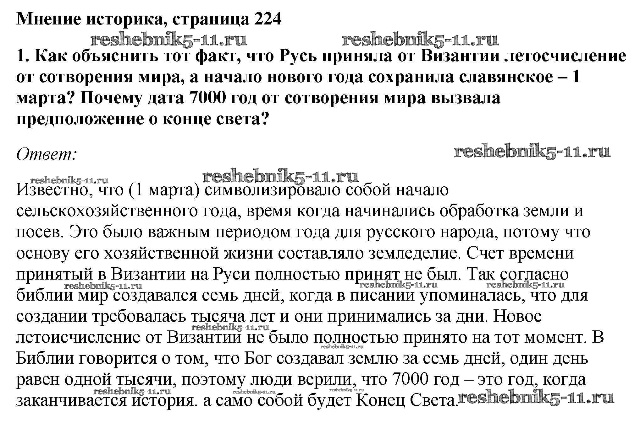 Готовая домашняя работа с ответами по Истории за 6 класс Андреев, Федоров Учебник Вертикаль Дрофа 2016 - §28-29. Русская культура в XIV - начале XVI вв. стр.224