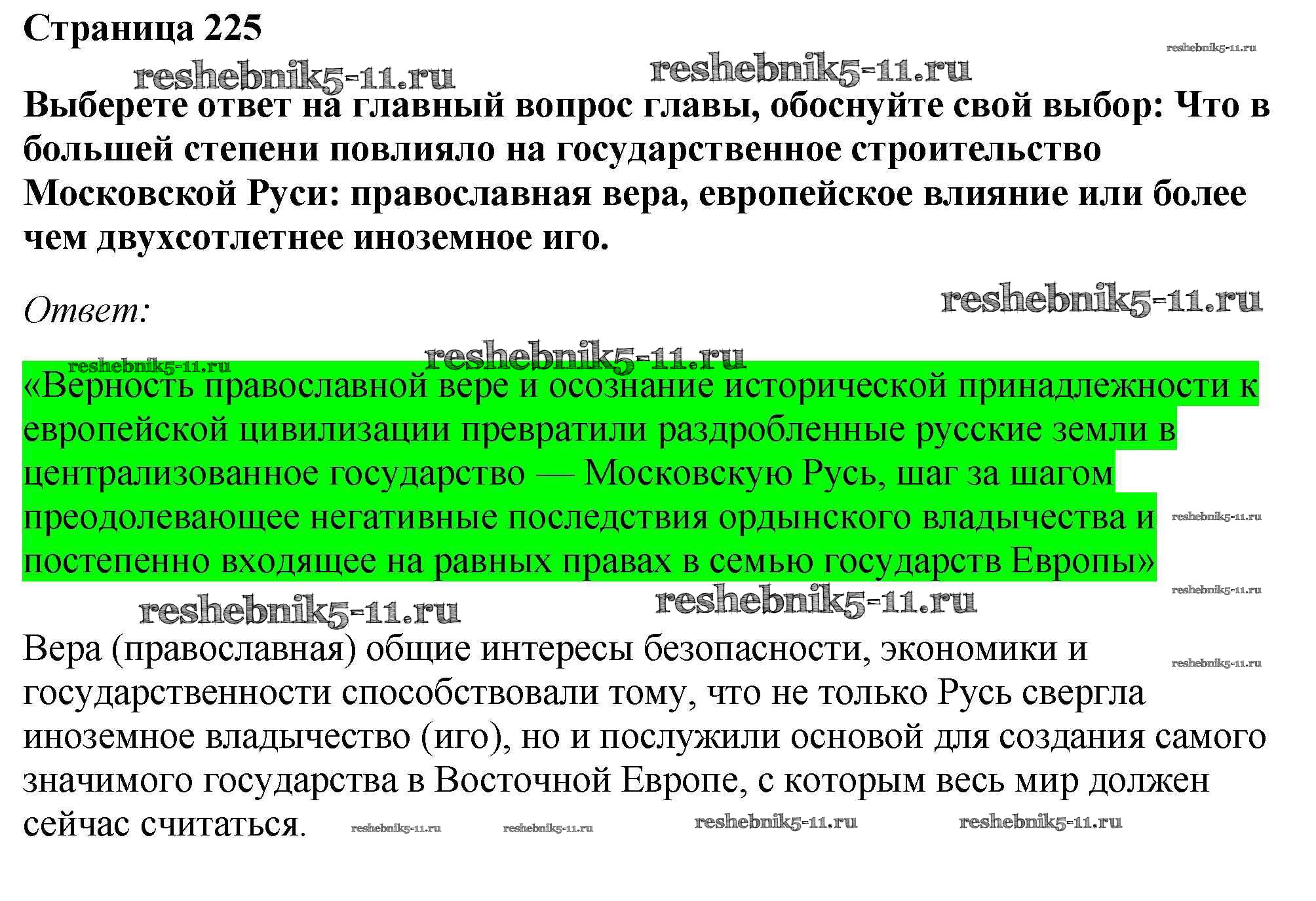Готовая домашняя работа с ответами по Истории за 6 класс Андреев, Федоров Учебник Вертикаль Дрофа 2016 - §28-29. Русская культура в XIV - начале XVI вв. стр.225