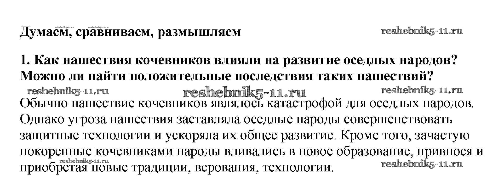 Готовая домашняя работа с ответами по Истории за 6 класс Арсентьев, Данилов, Стефанович Учебник Часть 1, 2 Просвещение 2016 ФГОС - Думаем, сравниваем, размышляем 1