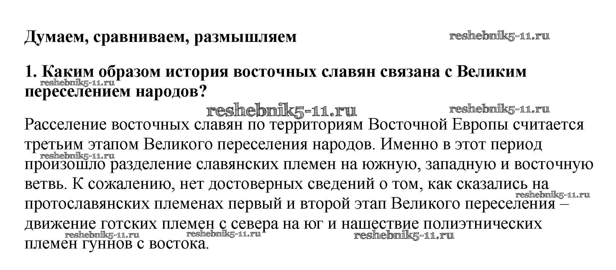 Готовая домашняя работа с ответами по Истории за 6 класс Арсентьев, Данилов, Стефанович Учебник Часть 1, 2 Просвещение 2016 ФГОС - Думаем, сравниваем, размышляем 1