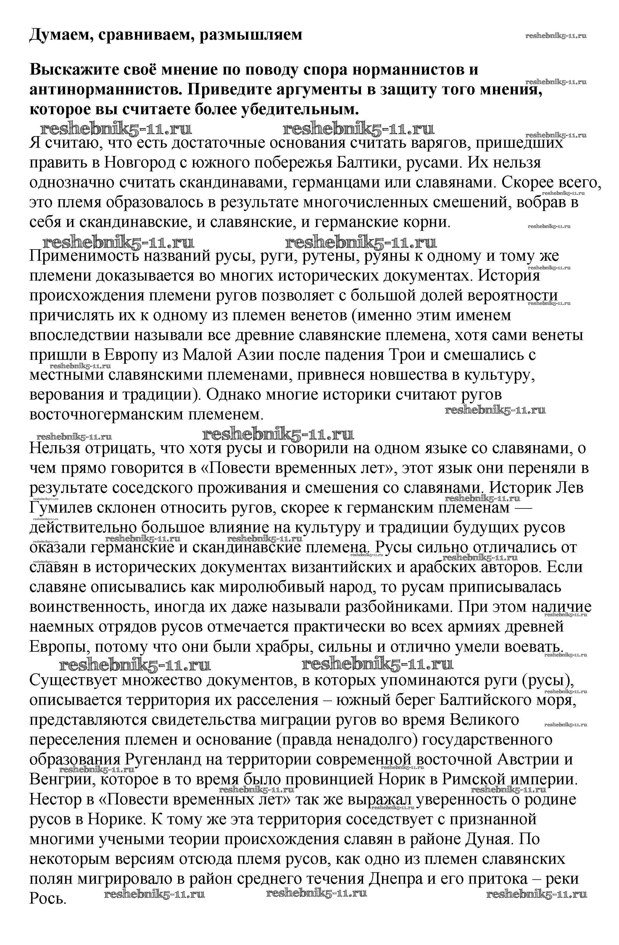 Готовая домашняя работа с ответами по Истории за 6 класс Арсентьев, Данилов, Стефанович Учебник Часть 1, 2 Просвещение 2016 ФГОС - Думаем, сравниваем, размышляем 1