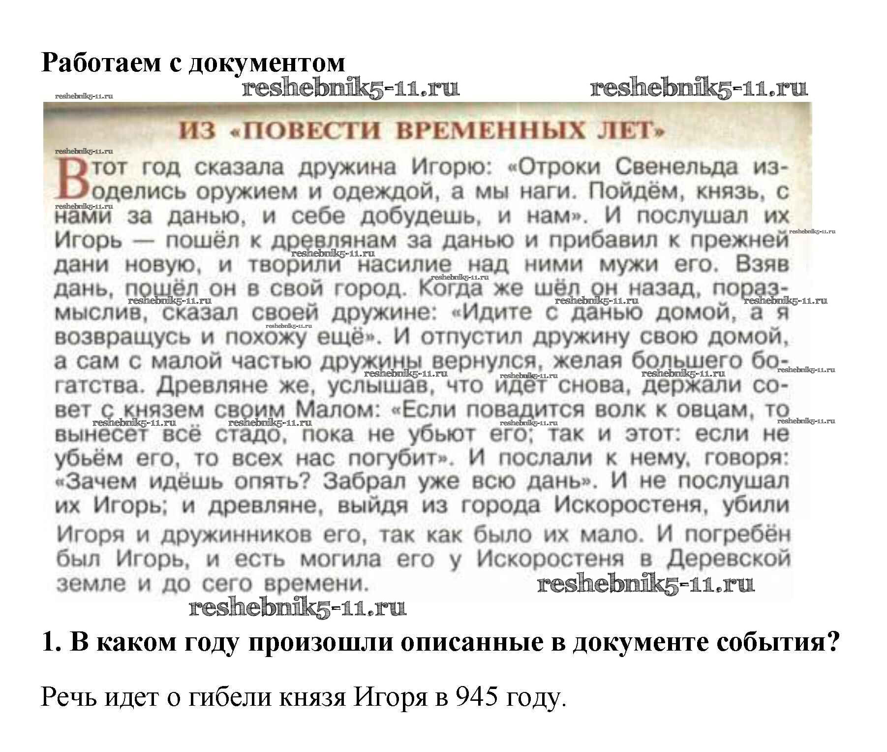 Готовая домашняя работа с ответами по Истории за 6 класс Арсентьев, Данилов, Стефанович Учебник Часть 1, 2 Просвещение 2016 ФГОС - Изучаем документ 1