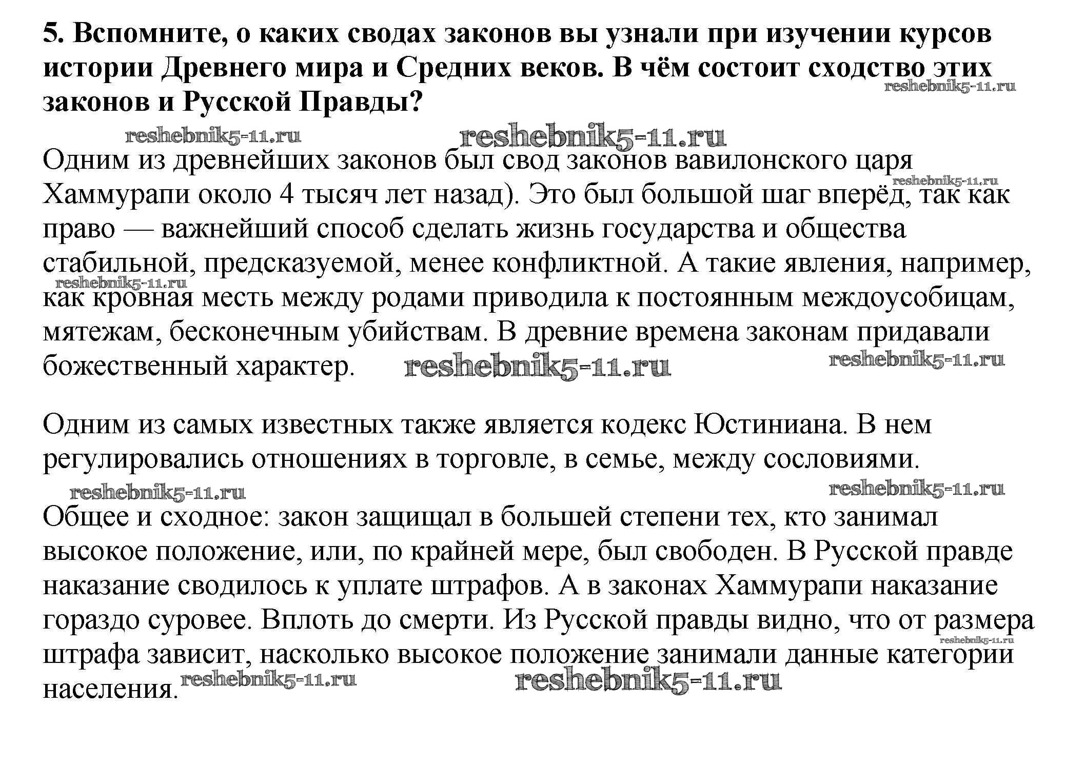 Готовая домашняя работа с ответами по Истории за 6 класс Арсентьев, Данилов, Стефанович Учебник Часть 1, 2 Просвещение 2016 ФГОС - Думаем, сравниваем, размышляем 5