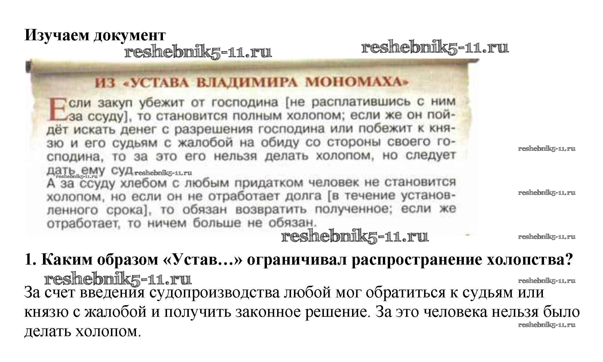 Готовая домашняя работа с ответами по Истории за 6 класс Арсентьев, Данилов, Стефанович Учебник Часть 1, 2 Просвещение 2016 ФГОС - Изучаем документ 1