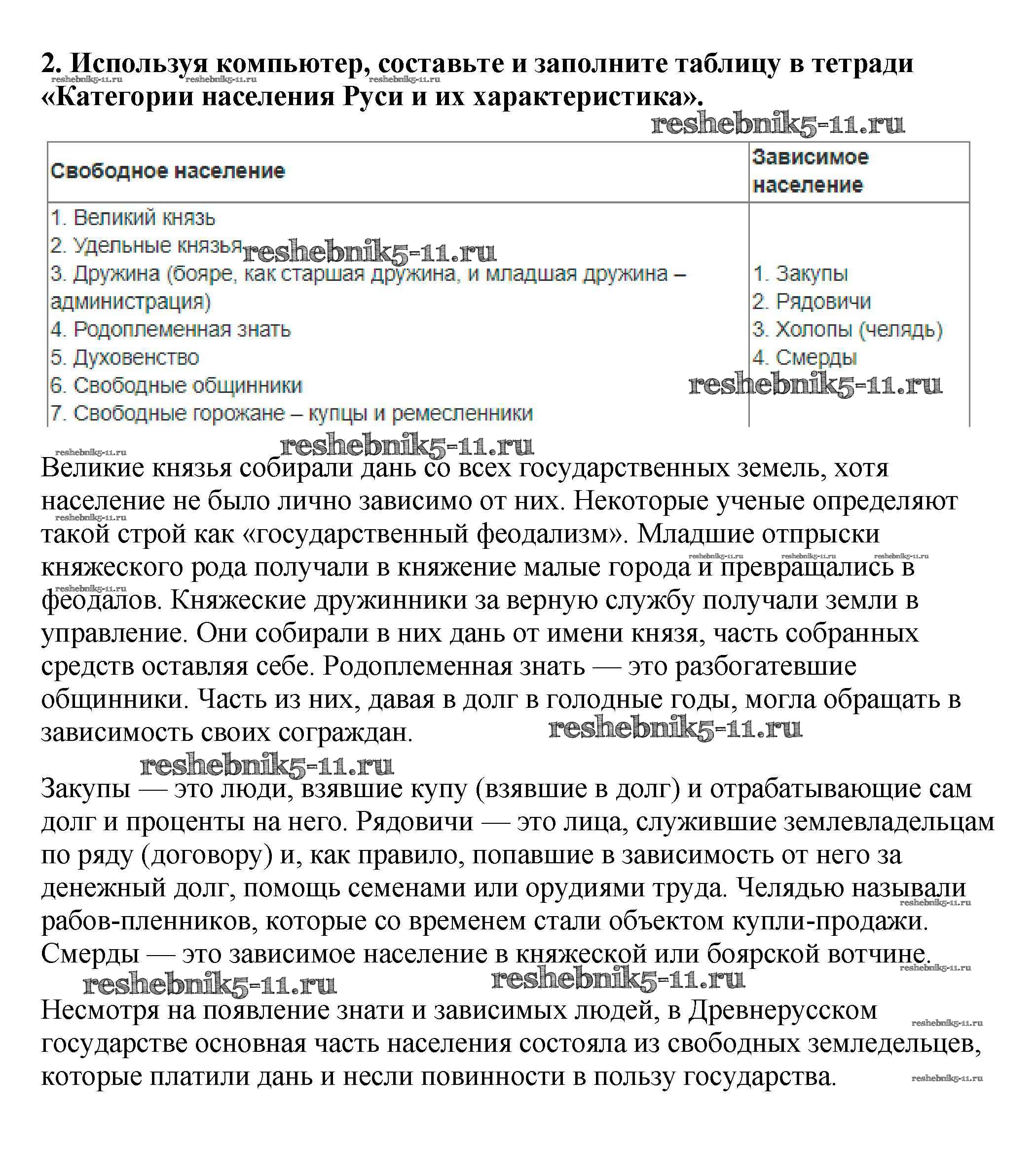 Готовая домашняя работа с ответами по Истории за 6 класс Арсентьев, Данилов, Стефанович Учебник Часть 1, 2 Просвещение 2016 ФГОС - Вопросы и задания для работы с текстом 2