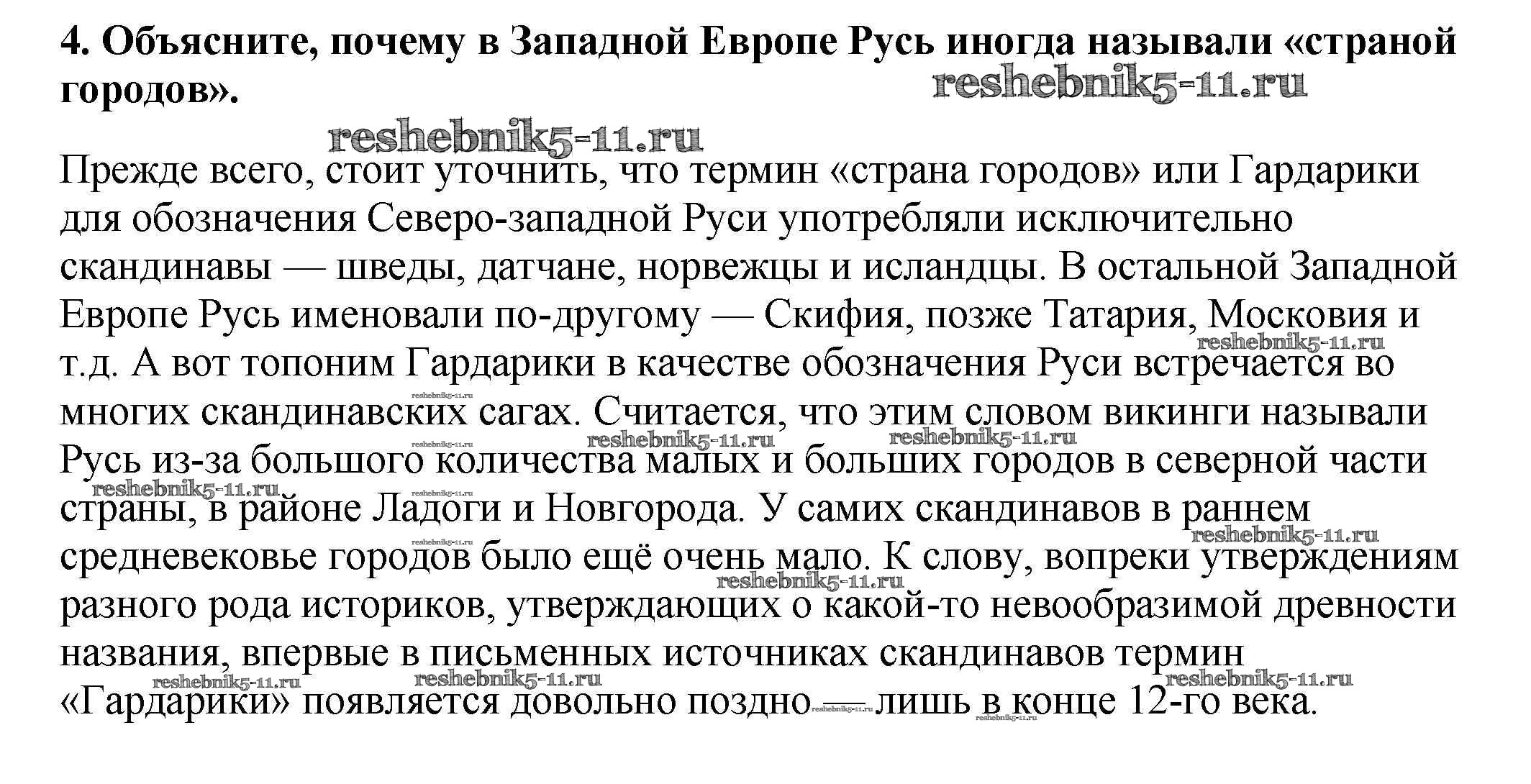 Готовая домашняя работа с ответами по Истории за 6 класс Арсентьев, Данилов, Стефанович Учебник Часть 1, 2 Просвещение 2016 ФГОС - Вопросы и задания для работы с текстом 4