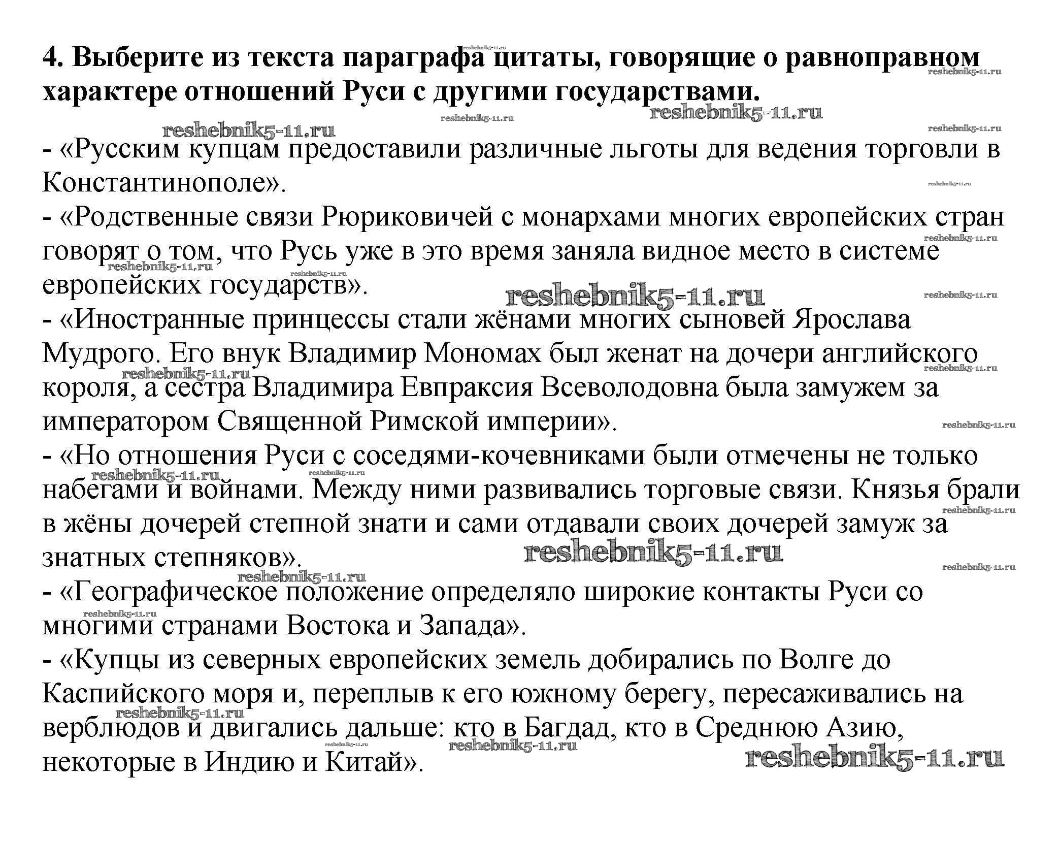 Готовая домашняя работа с ответами по Истории за 6 класс Арсентьев, Данилов, Стефанович Учебник Часть 1, 2 Просвещение 2016 ФГОС - Вопросы и задания для работы с текстом 4