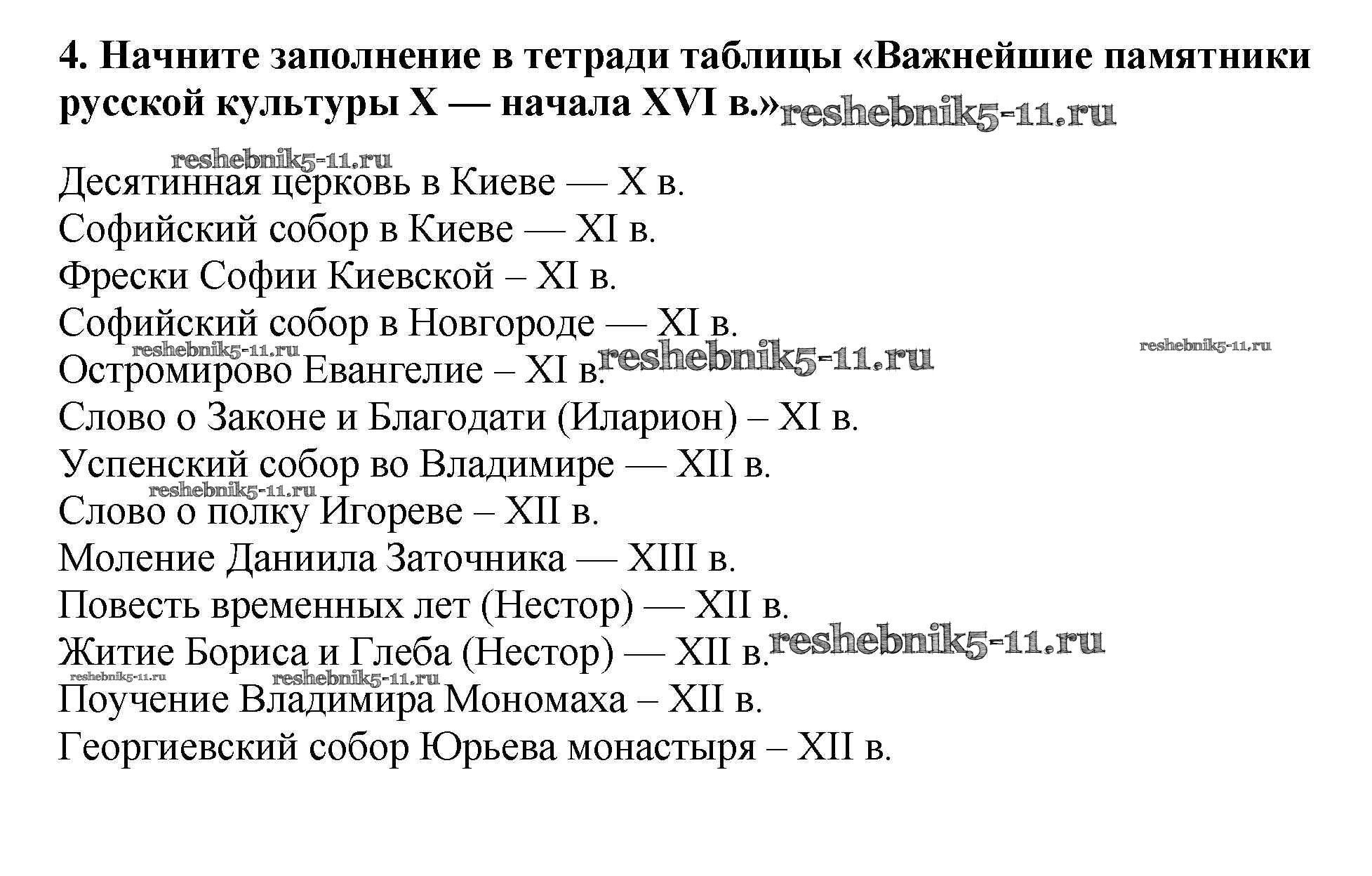Готовая домашняя работа с ответами по Истории за 6 класс Арсентьев, Данилов, Стефанович Учебник Часть 1, 2 Просвещение 2016 ФГОС - Думаем, сравниваем, размышляем 4