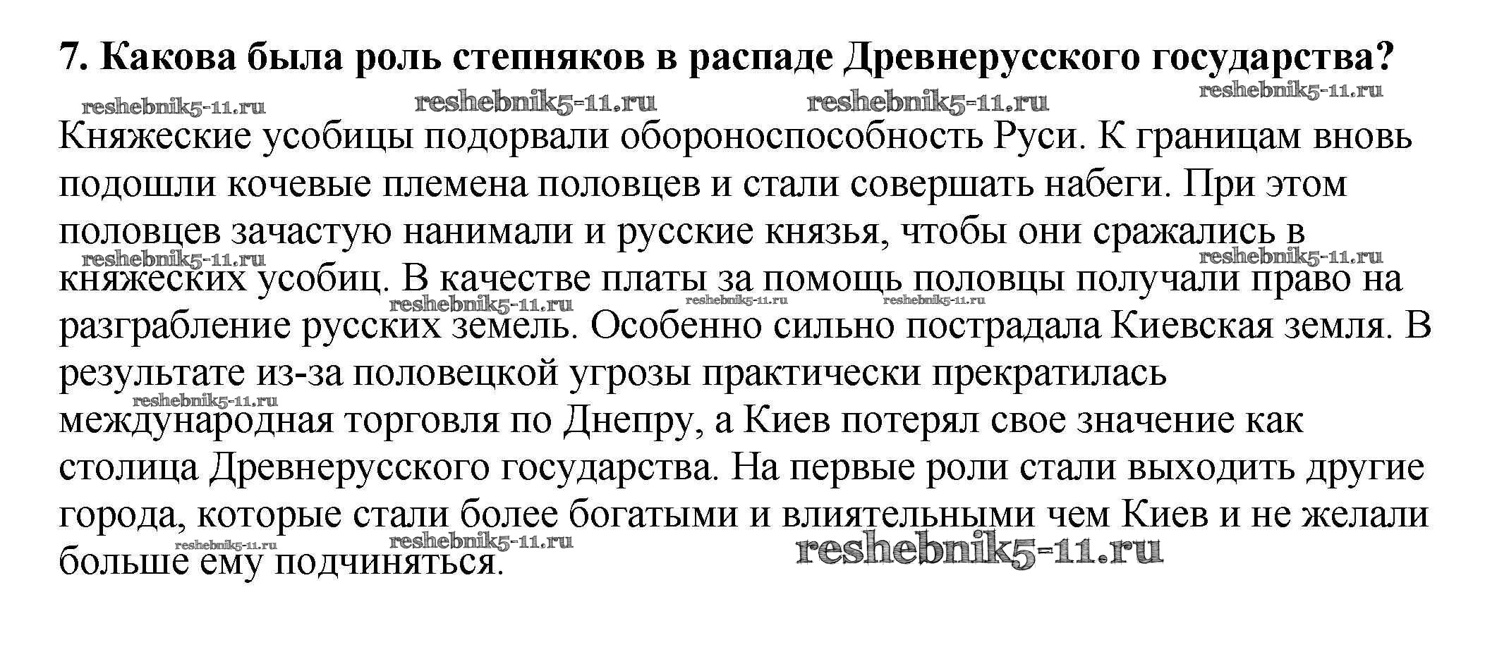 Готовая домашняя работа с ответами по Истории за 6 класс Арсентьев, Данилов, Стефанович Учебник Часть 1, 2 Просвещение 2016 ФГОС - Вопросы в тексте 7