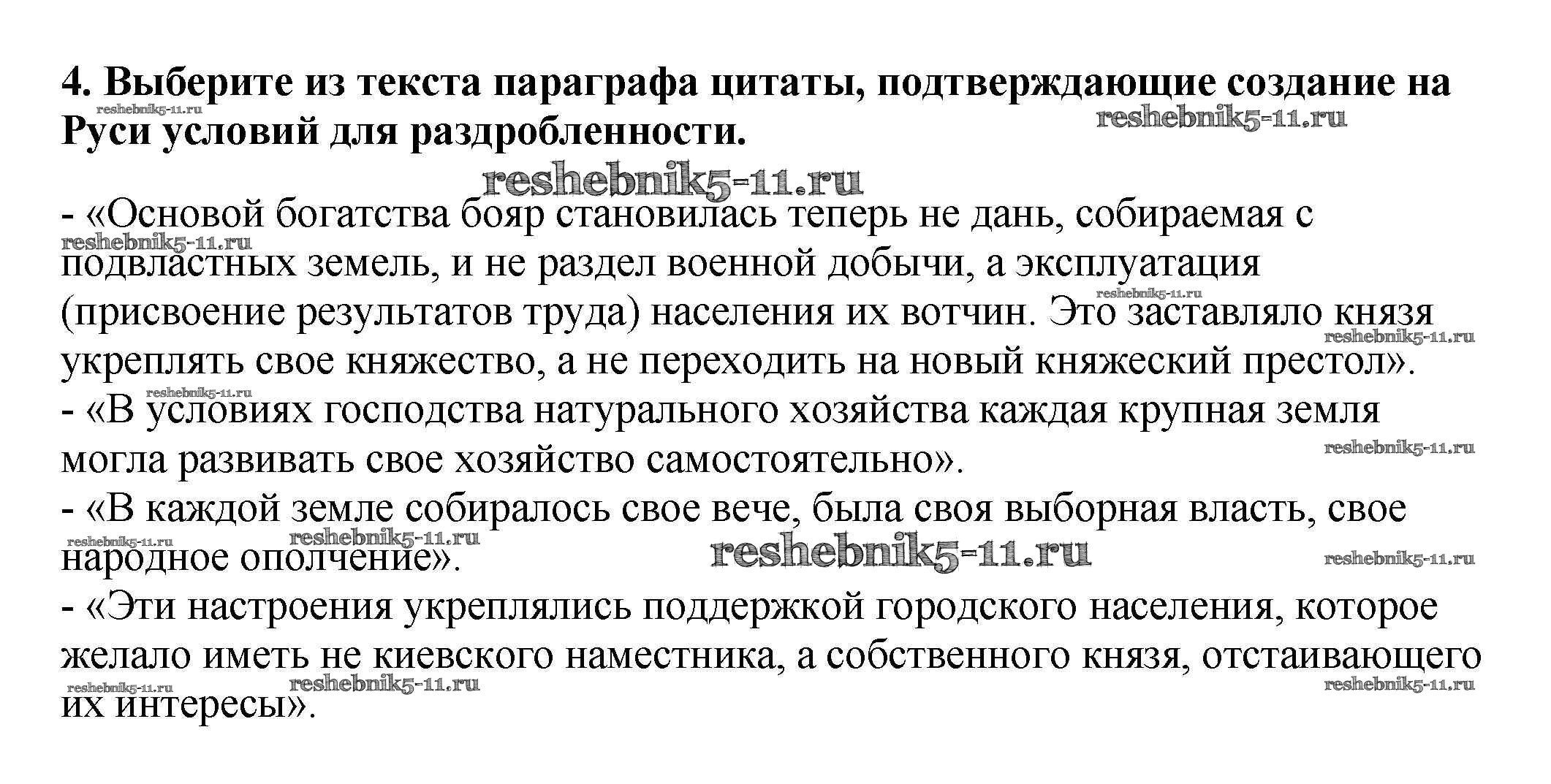 Готовая домашняя работа с ответами по Истории за 6 класс Арсентьев, Данилов, Стефанович Учебник Часть 1, 2 Просвещение 2016 ФГОС - Вопросы и задания для работы с текстом 4