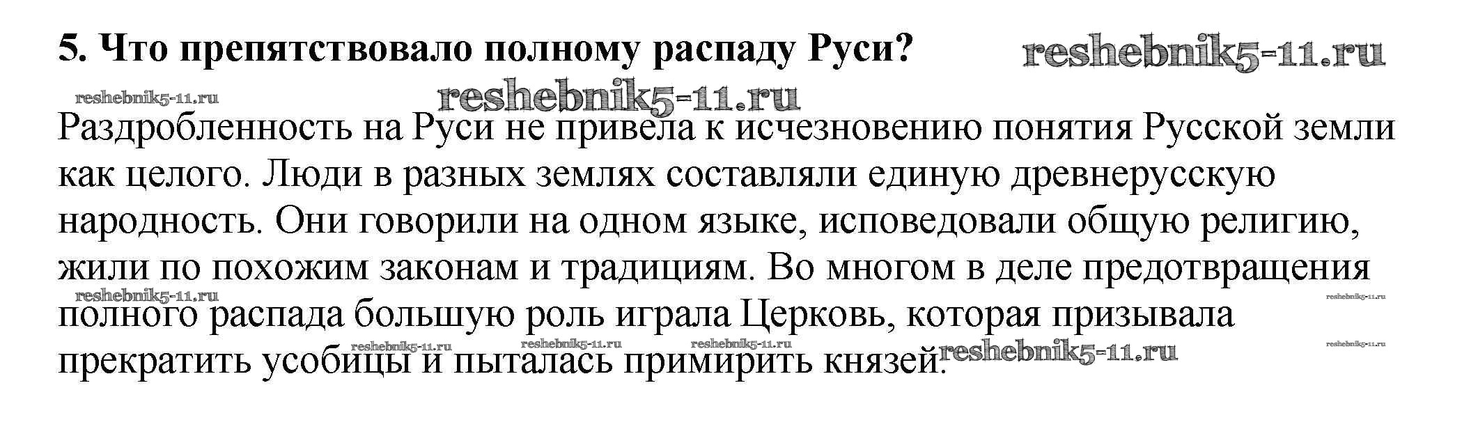 Готовая домашняя работа с ответами по Истории за 6 класс Арсентьев, Данилов, Стефанович Учебник Часть 1, 2 Просвещение 2016 ФГОС - Вопросы и задания для работы с текстом 5