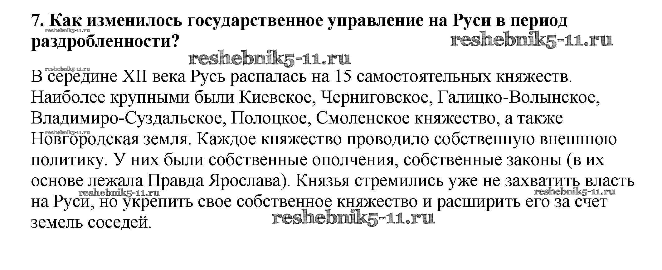 Готовая домашняя работа с ответами по Истории за 6 класс Арсентьев, Данилов, Стефанович Учебник Часть 1, 2 Просвещение 2016 ФГОС - Вопросы и задания для работы с текстом 7