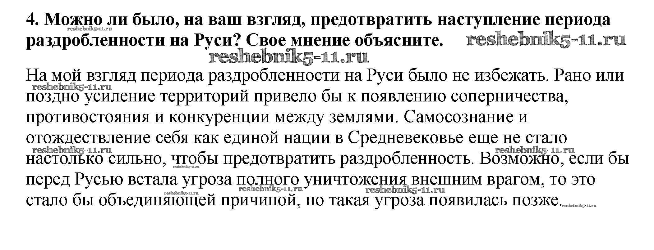 Готовая домашняя работа с ответами по Истории за 6 класс Арсентьев, Данилов, Стефанович Учебник Часть 1, 2 Просвещение 2016 ФГОС - Думаем, сравниваем, размышляем 4