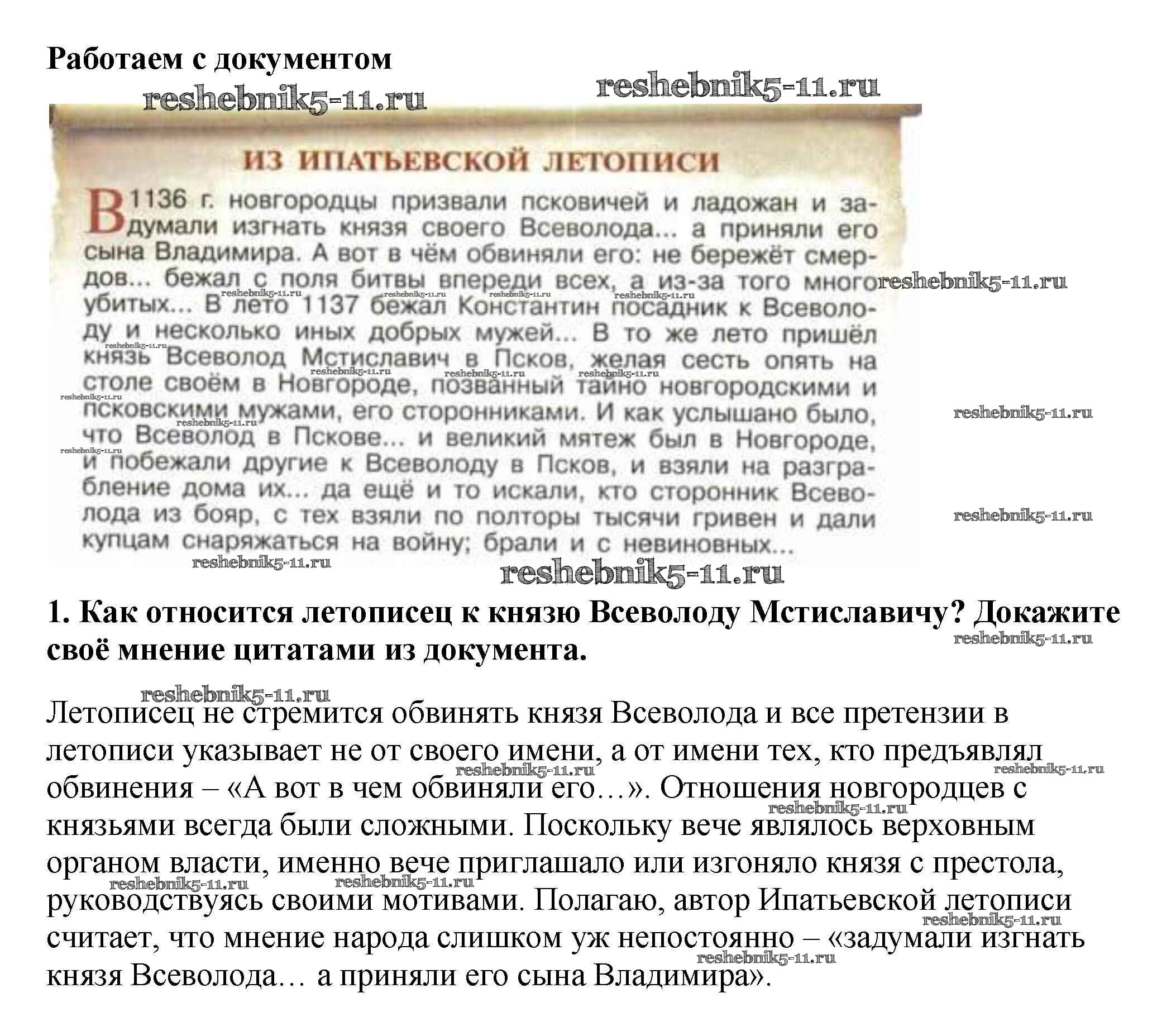 Готовая домашняя работа с ответами по Истории за 6 класс Арсентьев, Данилов, Стефанович Учебник Часть 1, 2 Просвещение 2016 ФГОС - Изучаем документ 1