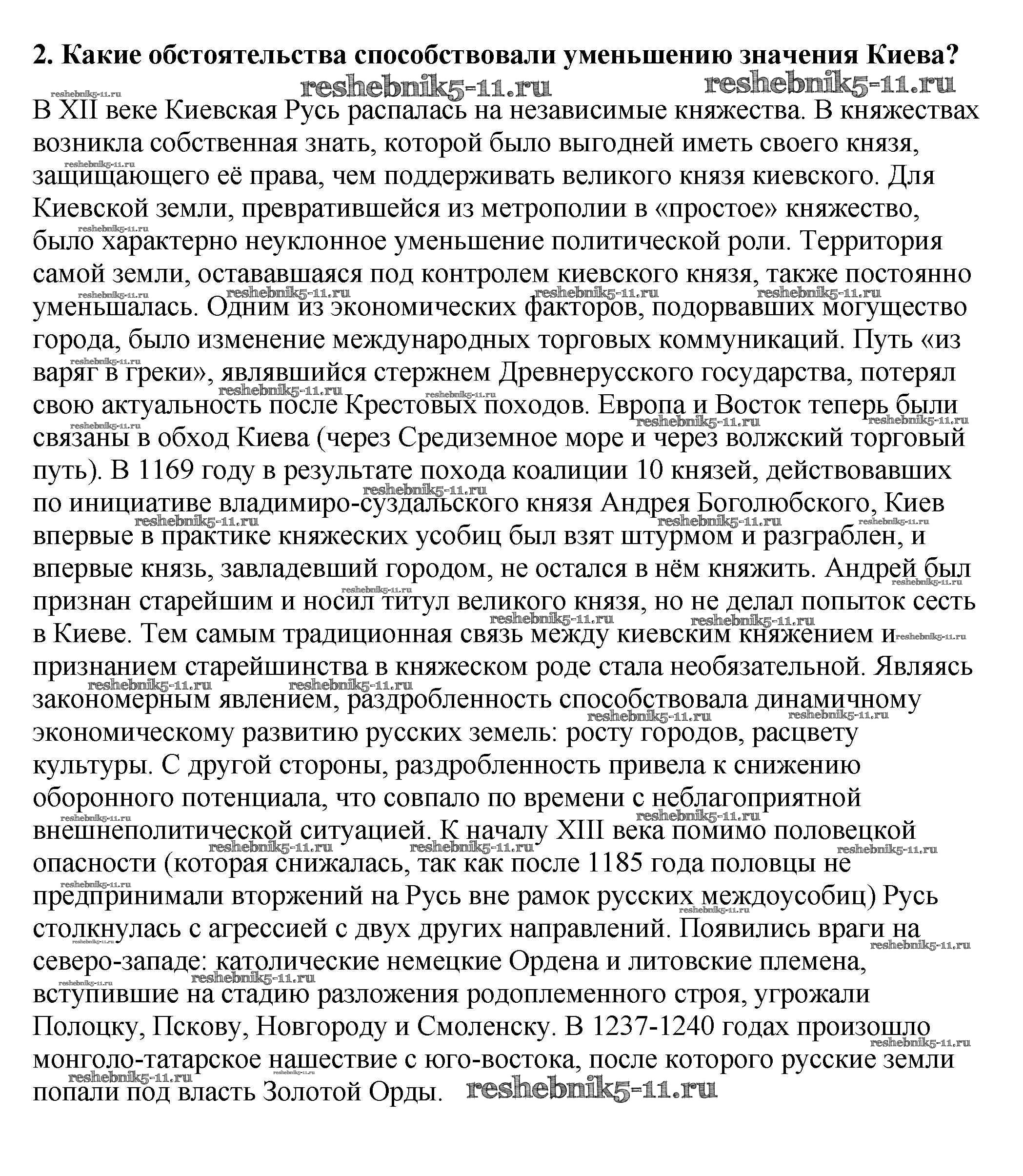 Готовая домашняя работа с ответами по Истории за 6 класс Арсентьев, Данилов, Стефанович Учебник Часть 1, 2 Просвещение 2016 ФГОС - Вопросы в тексте 2