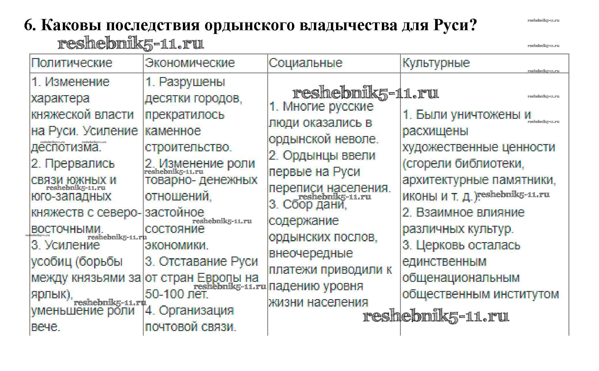 Готовая домашняя работа с ответами по Истории за 6 класс Арсентьев, Данилов, Стефанович Учебник Часть 1, 2 Просвещение 2016 ФГОС - Вопросы и задания для работы с текстом 6