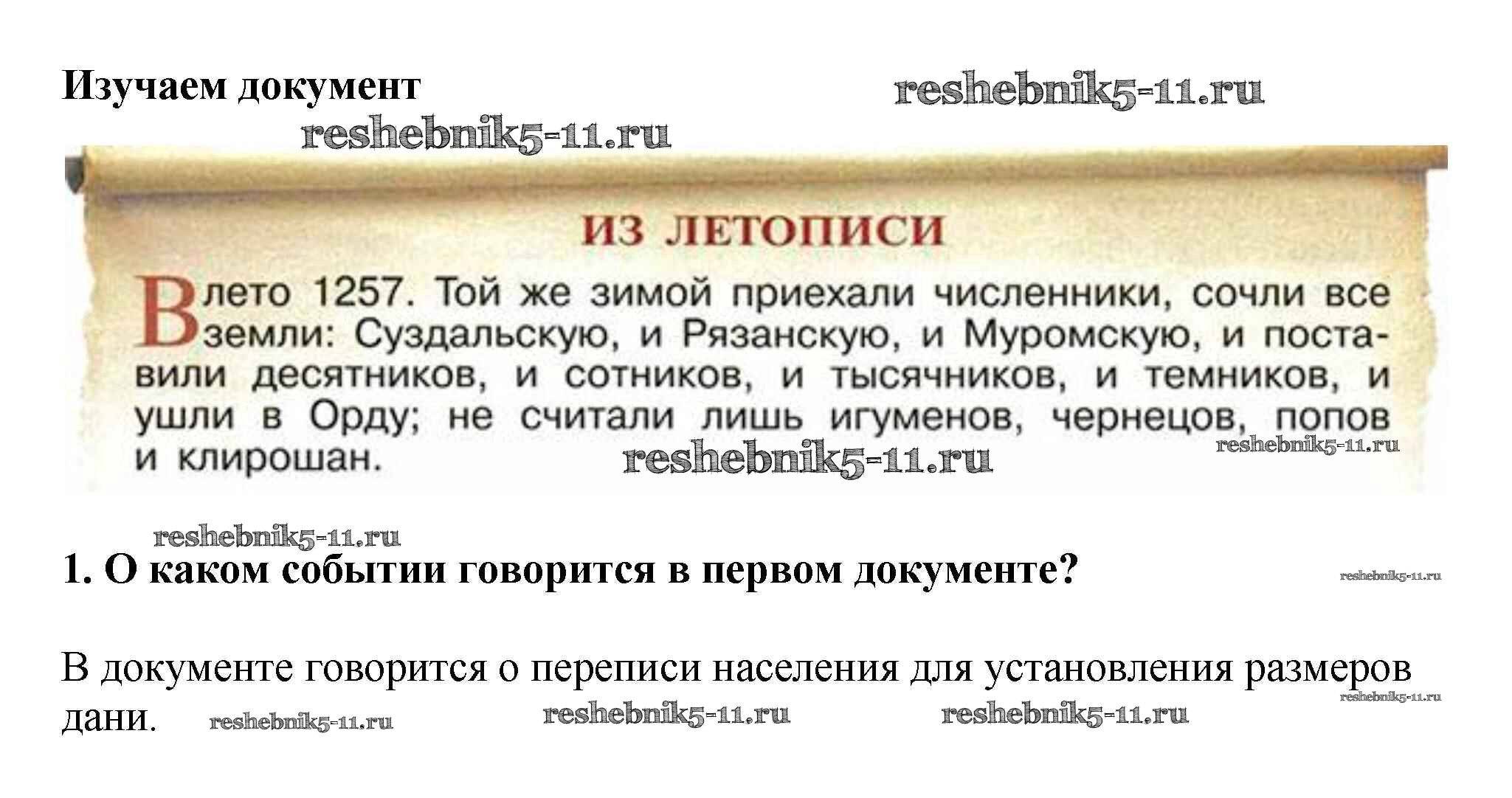 Готовая домашняя работа с ответами по Истории за 6 класс Арсентьев, Данилов, Стефанович Учебник Часть 1, 2 Просвещение 2016 ФГОС - Изучаем документ 1
