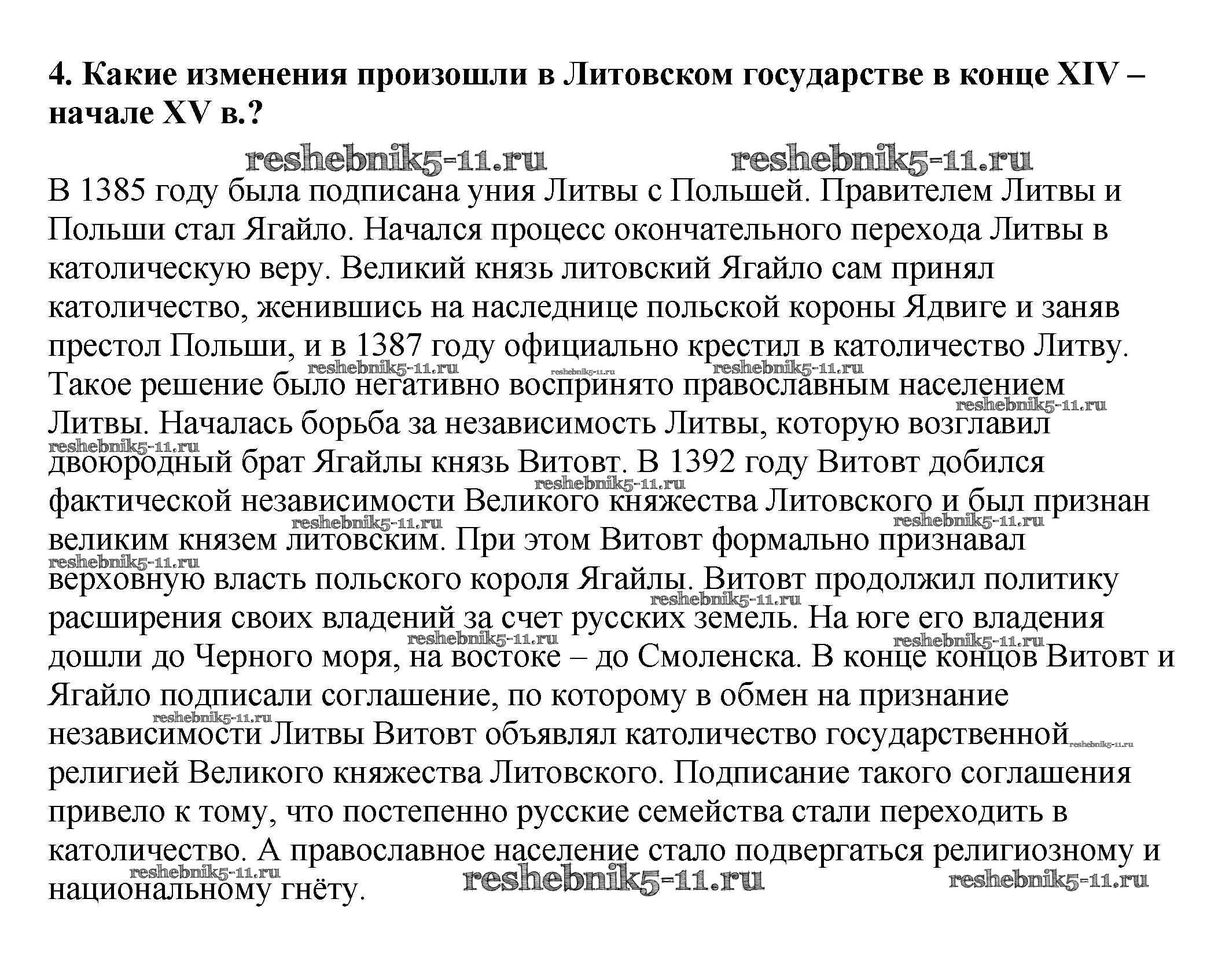 Готовая домашняя работа с ответами по Истории за 6 класс Арсентьев, Данилов, Стефанович Учебник Часть 1, 2 Просвещение 2016 ФГОС - Вопросы и задания для работы с текстом 4