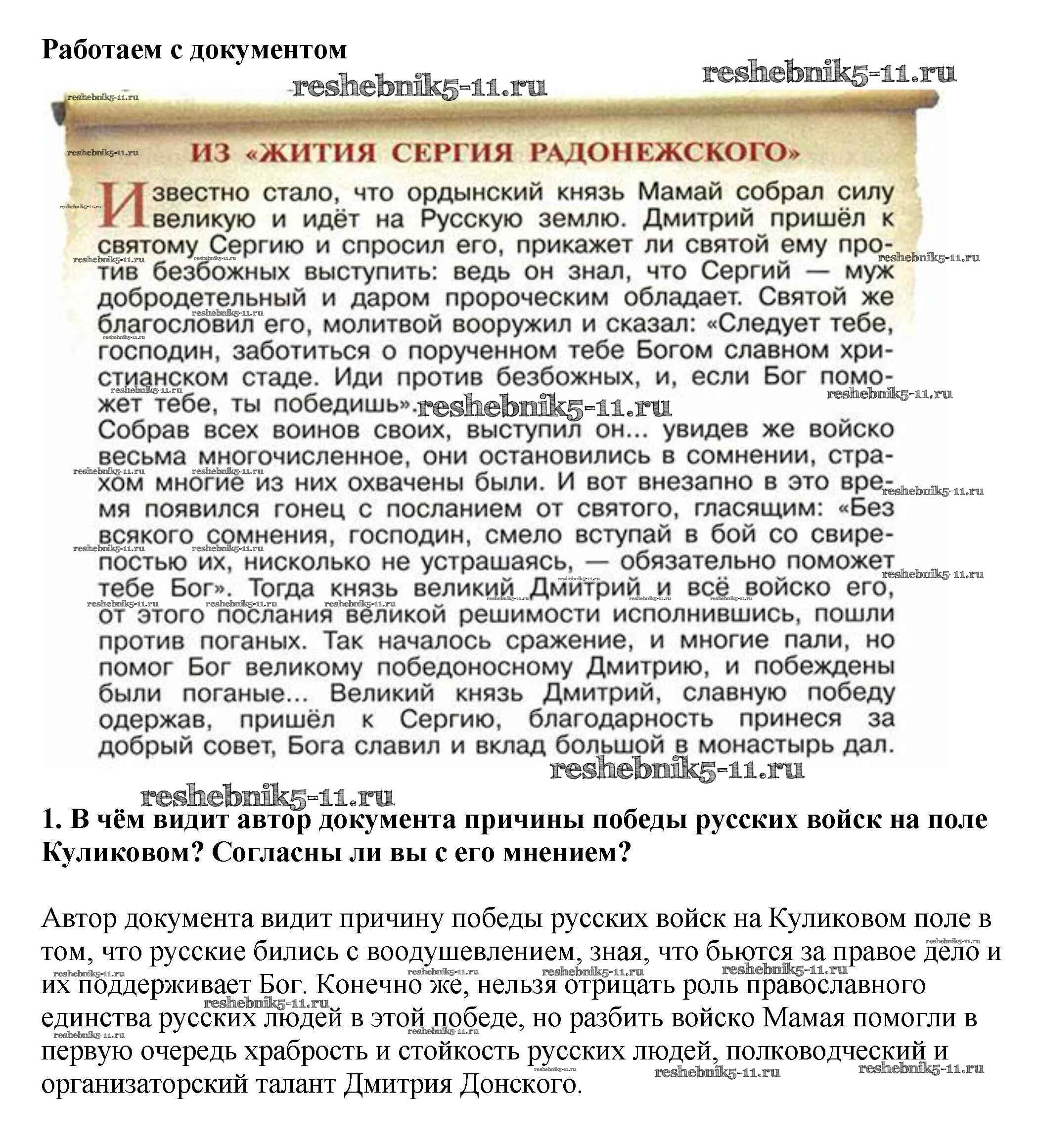 Готовая домашняя работа с ответами по Истории за 6 класс Арсентьев, Данилов, Стефанович Учебник Часть 1, 2 Просвещение 2016 ФГОС - Изучаем документ 1