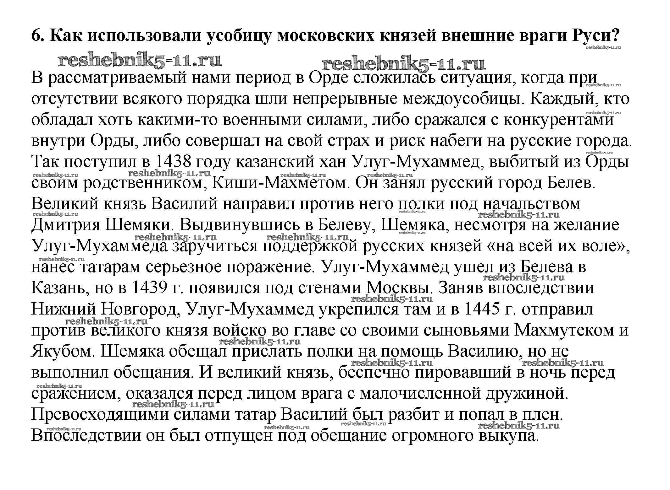 Готовая домашняя работа с ответами по Истории за 6 класс Арсентьев, Данилов, Стефанович Учебник Часть 1, 2 Просвещение 2016 ФГОС - Вопросы и задания для работы с текстом 6