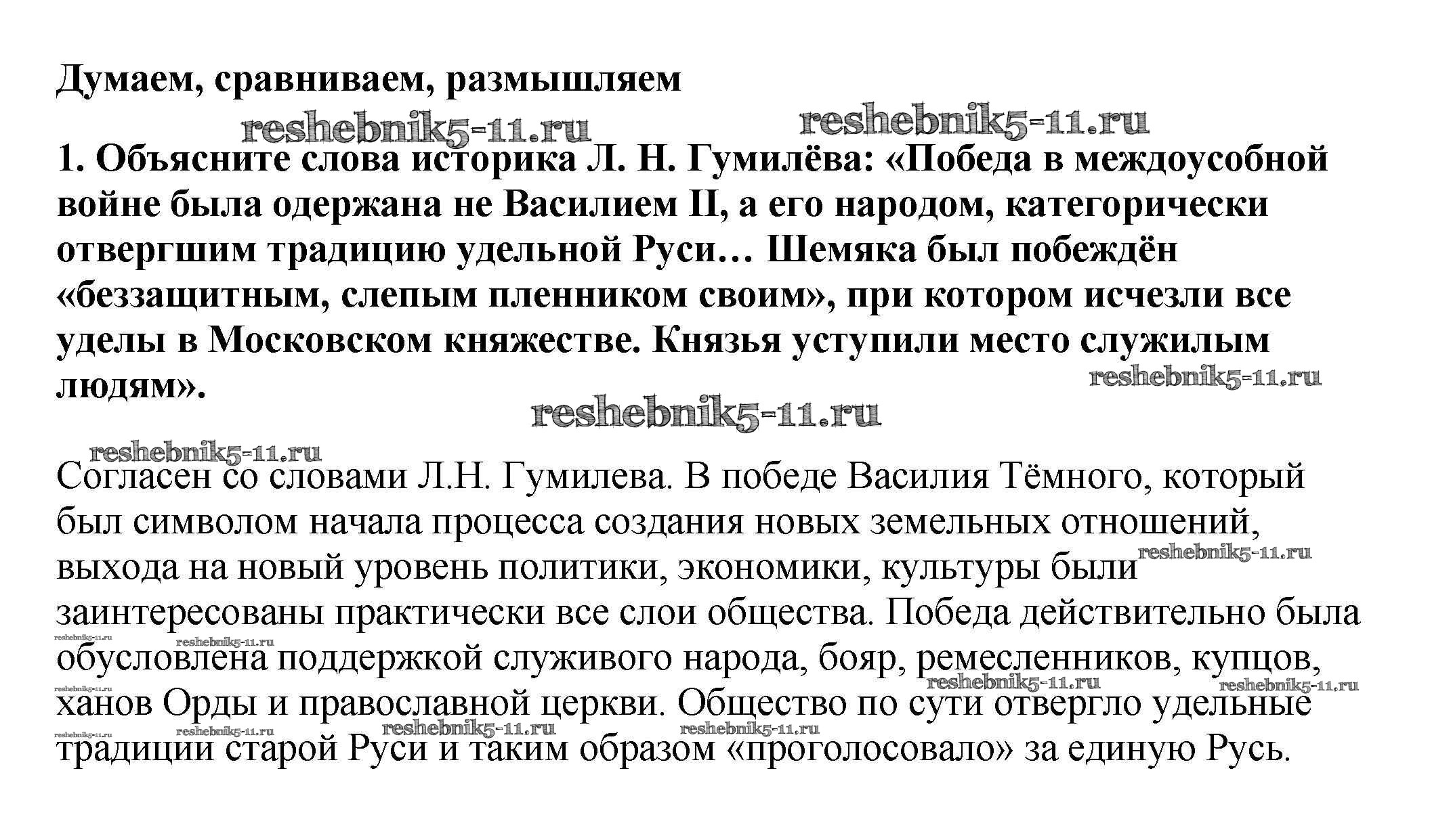 Готовая домашняя работа с ответами по Истории за 6 класс Арсентьев, Данилов, Стефанович Учебник Часть 1, 2 Просвещение 2016 ФГОС - Думаем, сравниваем, размышляем 1