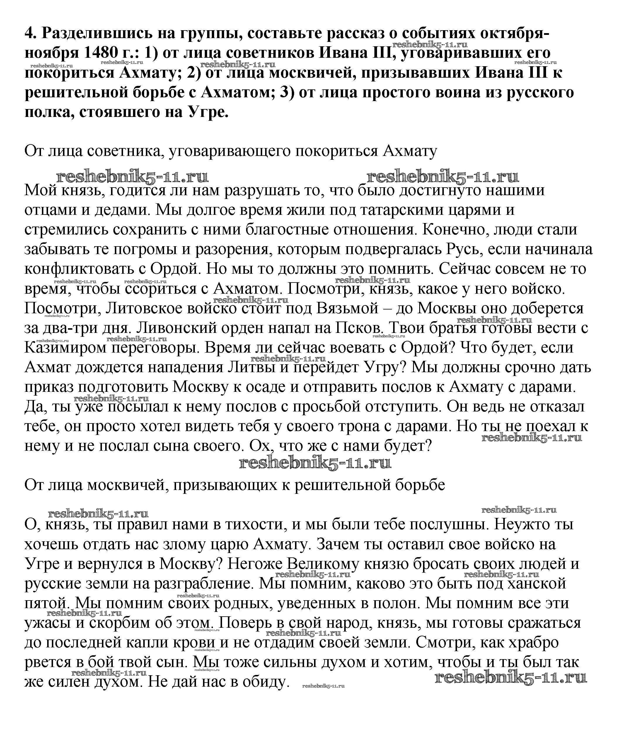 Готовая домашняя работа с ответами по Истории за 6 класс Арсентьев, Данилов, Стефанович Учебник Часть 1, 2 Просвещение 2016 ФГОС - Думаем, сравниваем, размышляем 4