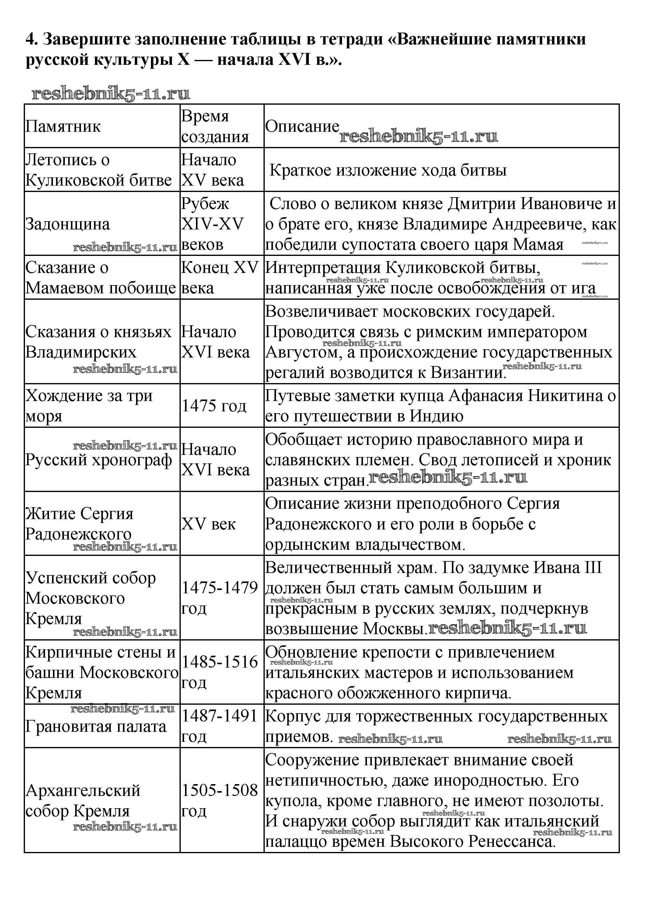 Готовая домашняя работа с ответами по Истории за 6 класс Арсентьев, Данилов, Стефанович Учебник Часть 1, 2 Просвещение 2016 ФГОС - Думаем, сравниваем, размышляем 4