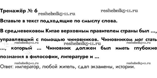 Готовая домашняя работа с ответами по Истории за 6 класс Бойцов, Шукуров Учебник Инновационная школа Русское слово 2019 ФГОС - Тренажёр 6