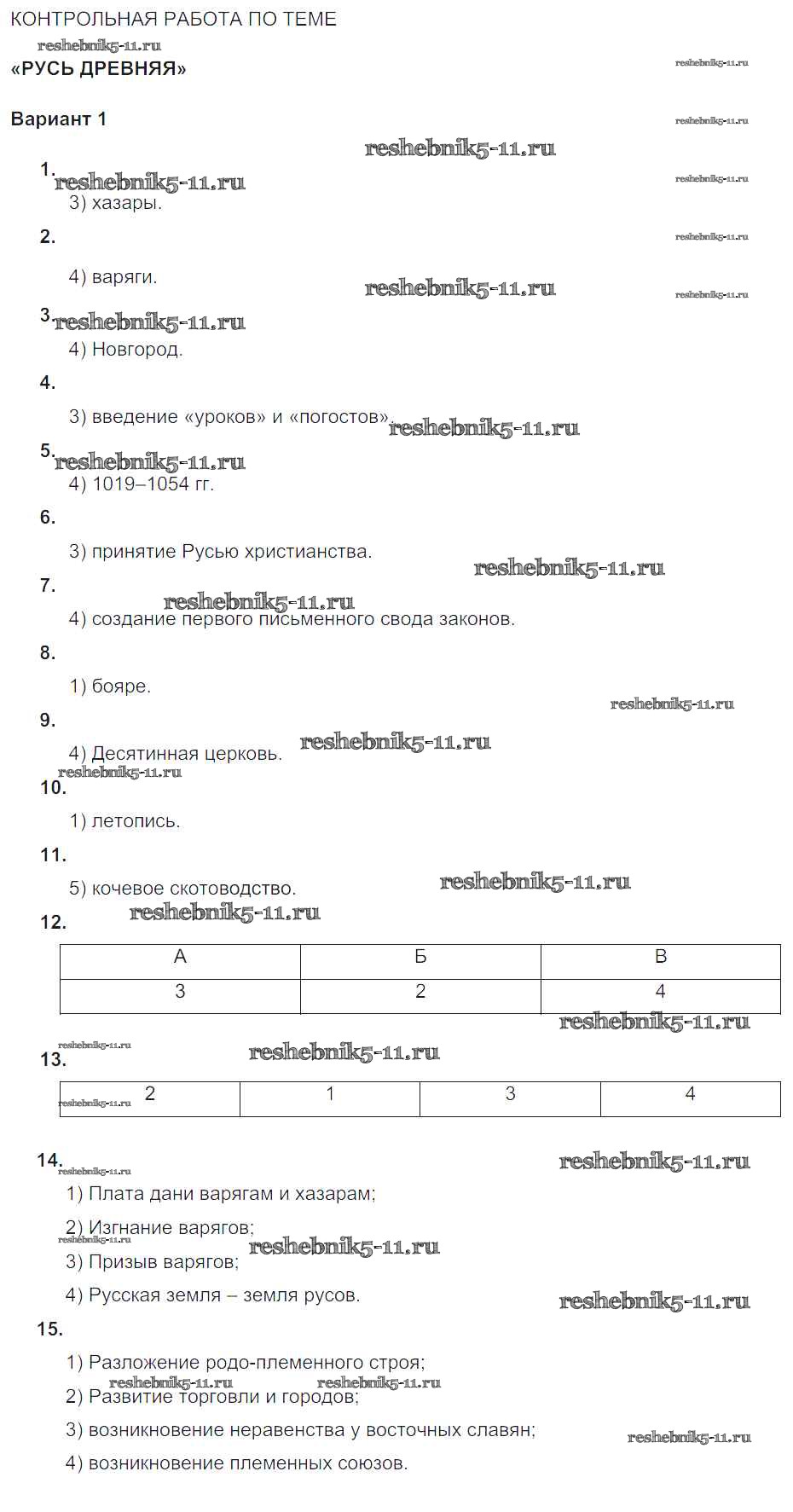 Готовая домашняя работа с ответами по Истории за 6 класс Артасов, Гаврилина Тематический контроль Национальное образование 2015 ФГОС - КР. Русь Древняя Вариант-1