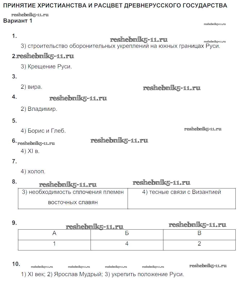 Готовая домашняя работа с ответами по Истории за 6 класс Артасов, Гаврилина Тематический контроль Национальное образование 2015 ФГОС - СР-№2. Принятие христианства и расцвет Древнерусского государства Вариант-1