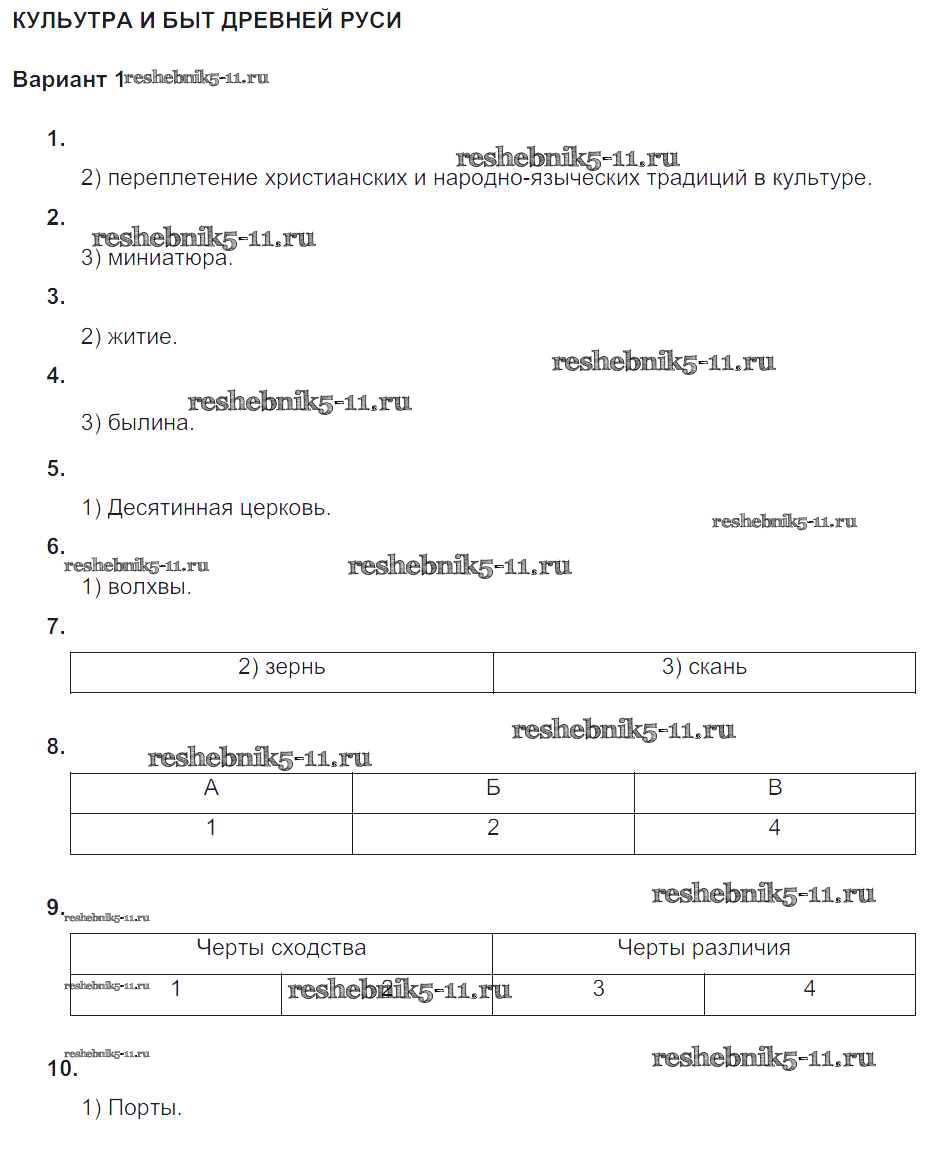 Готовая домашняя работа с ответами по Истории за 6 класс Артасов, Гаврилина Тематический контроль Национальное образование 2015 ФГОС - СР-№3. Культура и быт Древней Руси Вариант-1