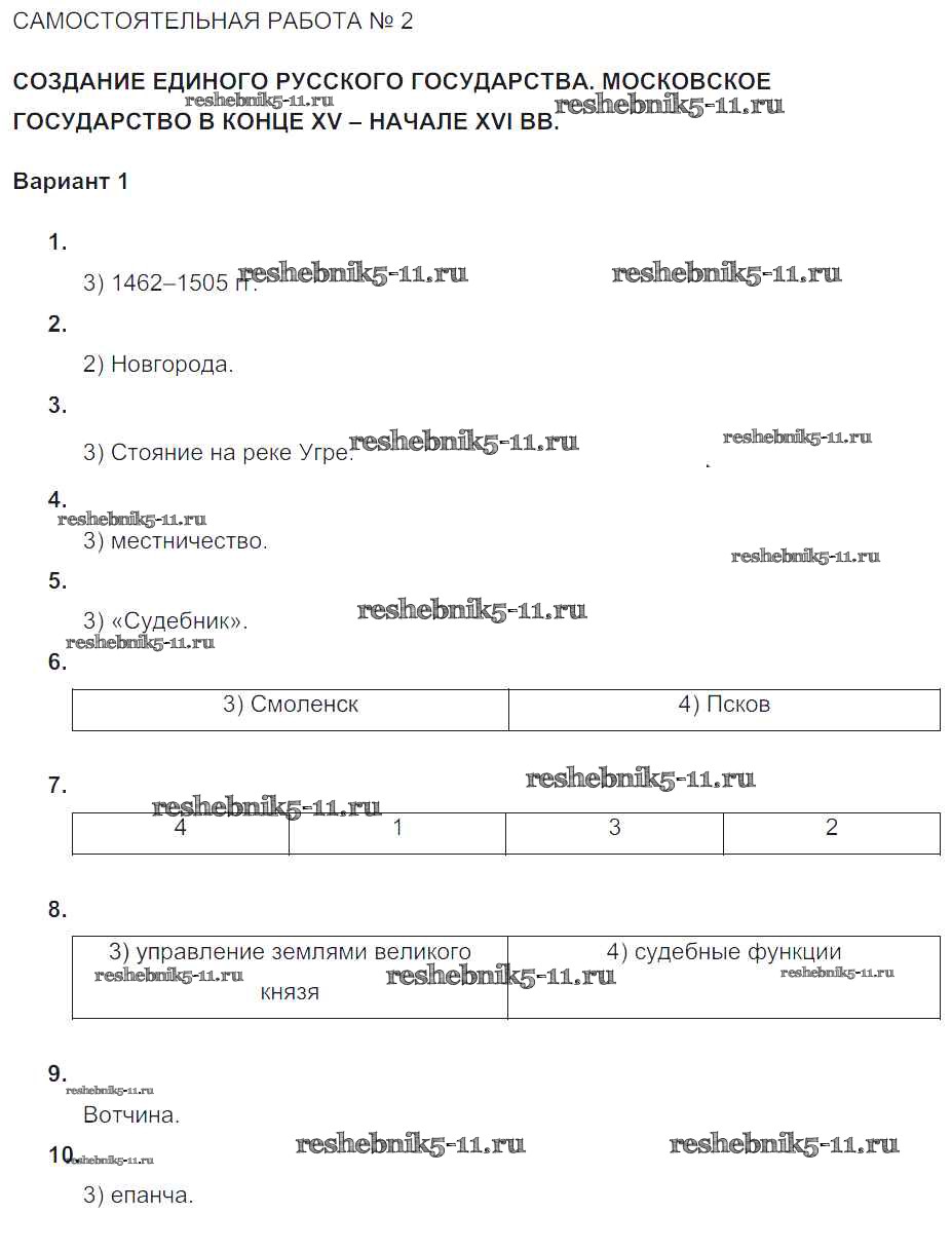 Решебник / Русь Московская / ср-№2 / вариант-1
