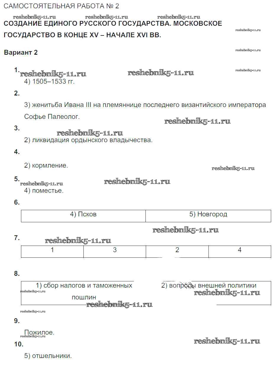 Решебник / Русь Московская / ср-№2 / вариант-2