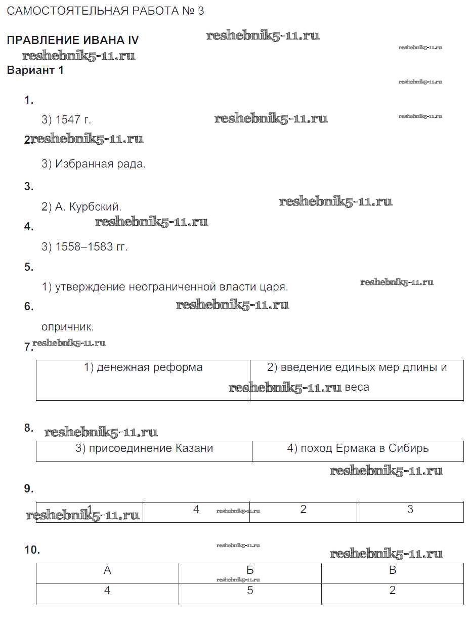 Готовая домашняя работа с ответами по Истории за 6 класс Артасов, Гаврилина Тематический контроль Национальное образование 2015 ФГОС - СР-№3. Правление Иоана IV Вариант-1