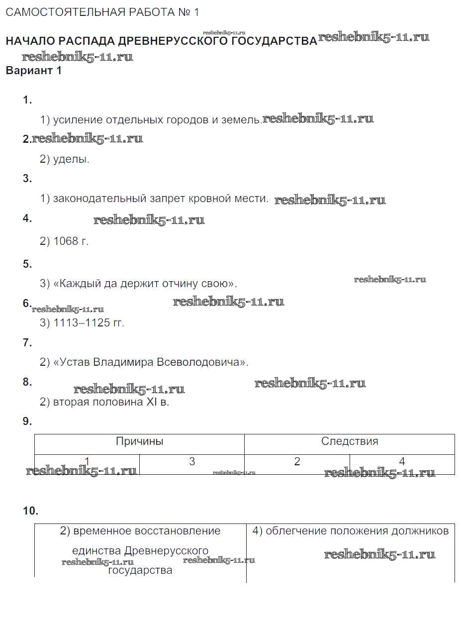 Решебник / формирование самостоятельных государственных образований на Руси / ср-№1 / вариант-1