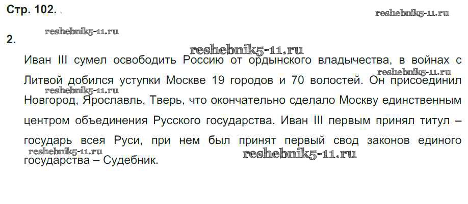 Готовая домашняя работа с ответами по Истории за 6 класс Гевуркова Рабочая тетрадь УМК Экзамен 2018 ФГОС - Страницы тетради 102