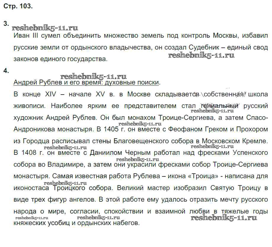 Готовая домашняя работа с ответами по Истории за 6 класс Гевуркова Рабочая тетрадь УМК Экзамен 2018 ФГОС - Страницы тетради 103