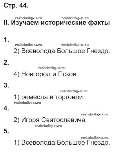 Готовая домашняя работа с ответами по Истории за 6 класс Гевуркова Рабочая тетрадь УМК Экзамен 2018 ФГОС - Страницы тетради 44