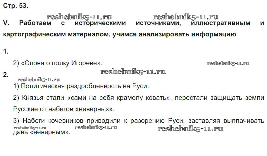 История за 6 класс Гевуркова Рабочая тетрадь УМК Экзамен страница № 53