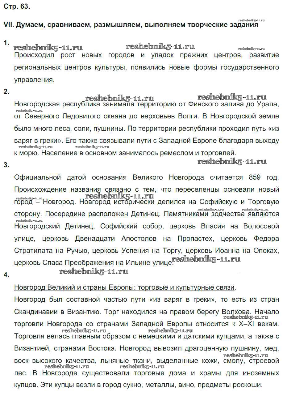 Готовая домашняя работа с ответами по Истории за 6 класс Гевуркова Рабочая тетрадь УМК Экзамен 2018 ФГОС - Страницы тетради 63