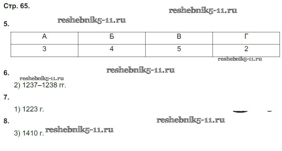 Готовая домашняя работа с ответами по Истории за 6 класс Гевуркова Рабочая тетрадь УМК Экзамен 2018 ФГОС - Страницы тетради 65